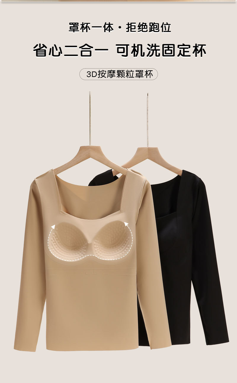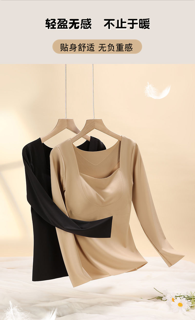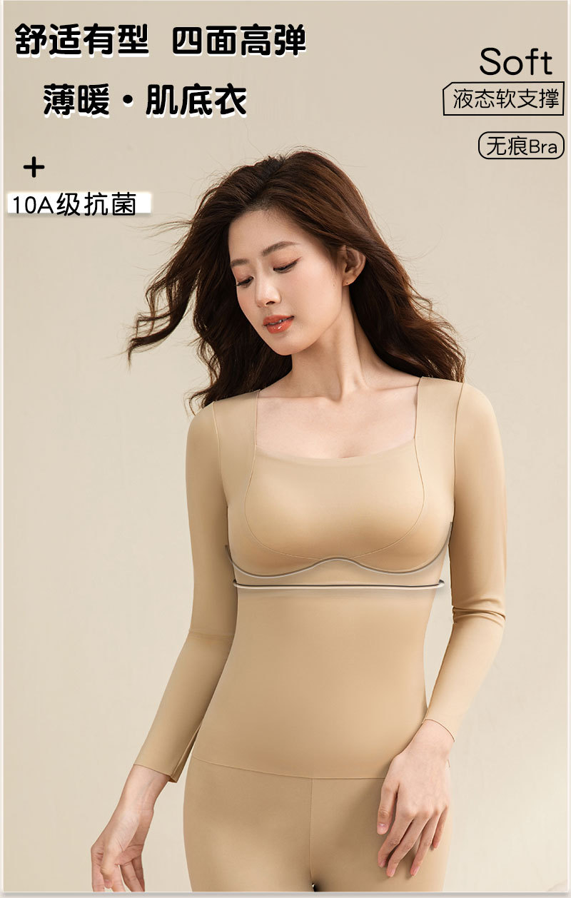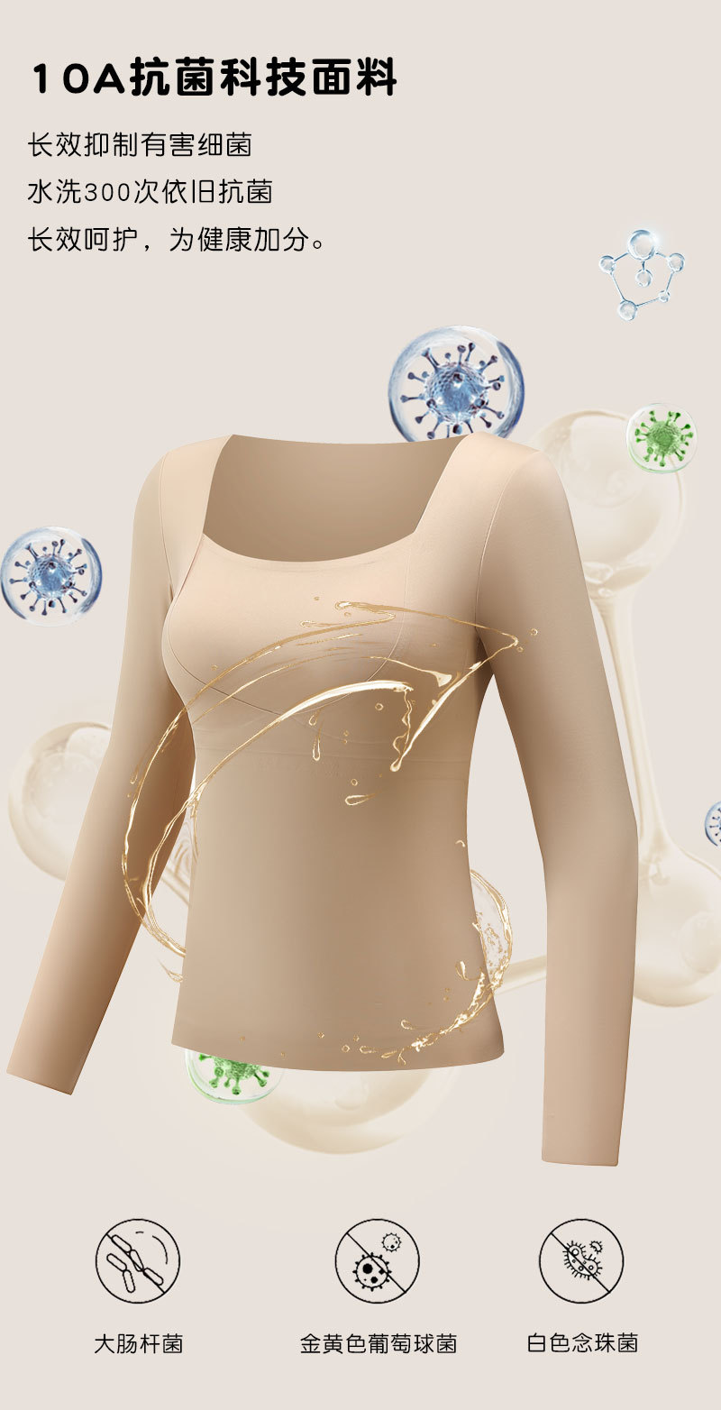 Бесшовная, легкая, антибактериальная, утепленная осенняя одежда для женщин, фиксированная чашка, мягкая поддержка, длинные рукава, нижняя футболка с мышечным базовым слоем