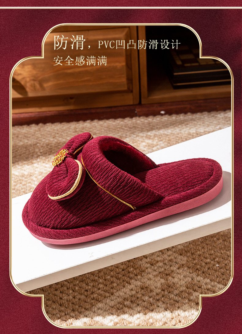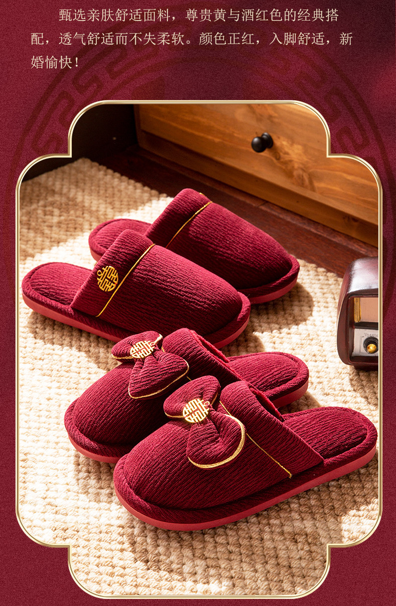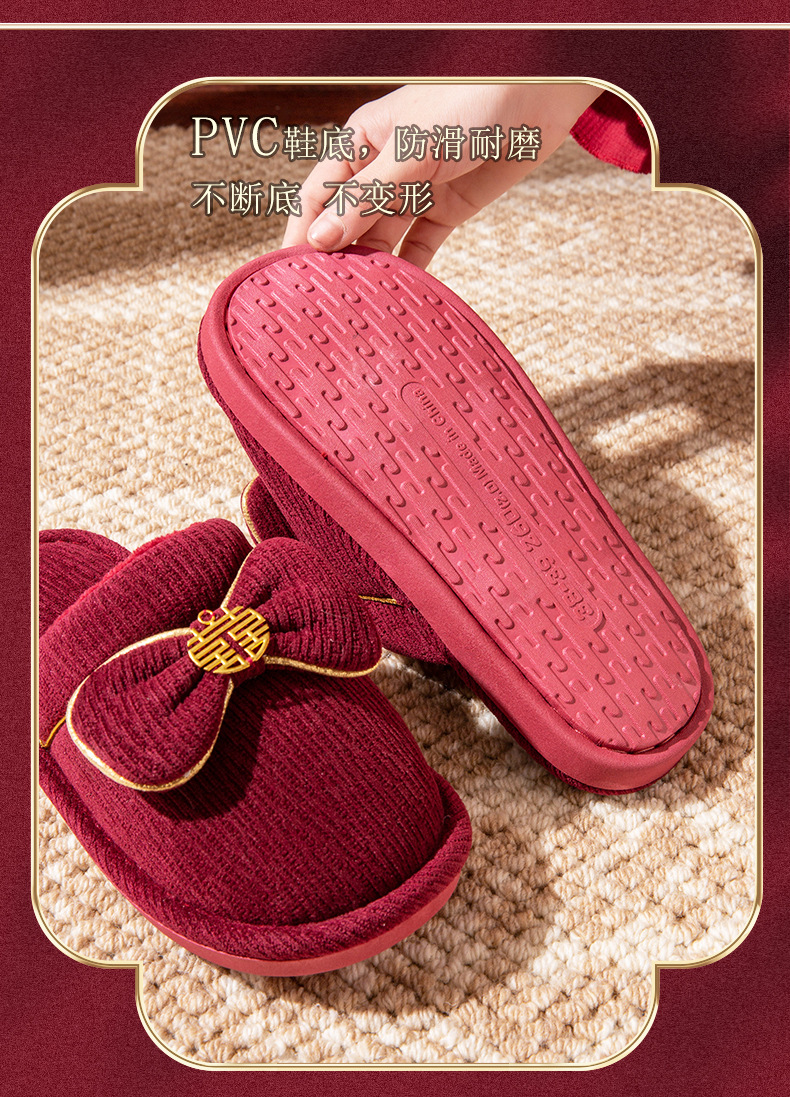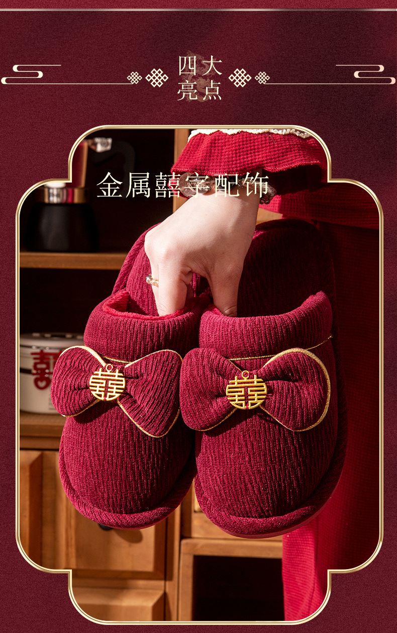 Зимние красные свадебные тапочки с бархатом и утолщением для невесты и жениха, свадебные торжества, приданое невесты, парные тапочки для дома