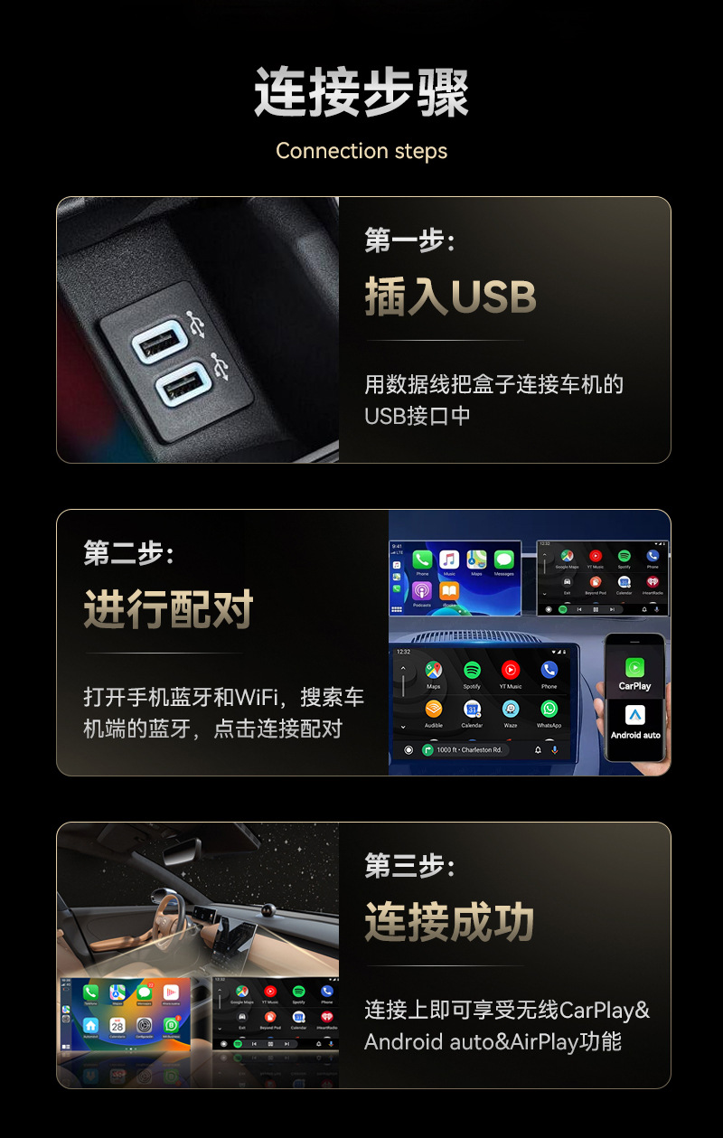 Проводной в беспроводной адаптер Carplay с зеркальным отображением 3в1, беспроводной Carplay и Android Auto