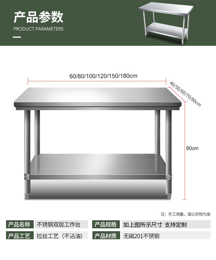 Коммерческий рабочий стол из нержавеющей стали, кухонный стол, двухслойная разделочная доска, утолщенный прямоугольный стол для домашнего использования