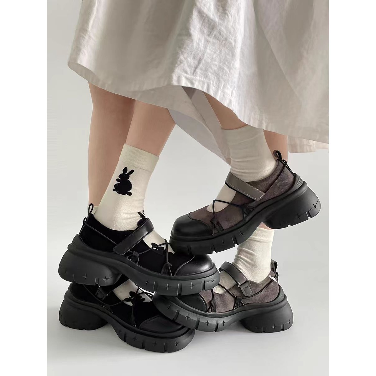 Толстосоленные обувь для увеличения роста, новые модели для невысоких, весна-лето 2025, серые и черные плоские туфли с квадратным носком для женщин