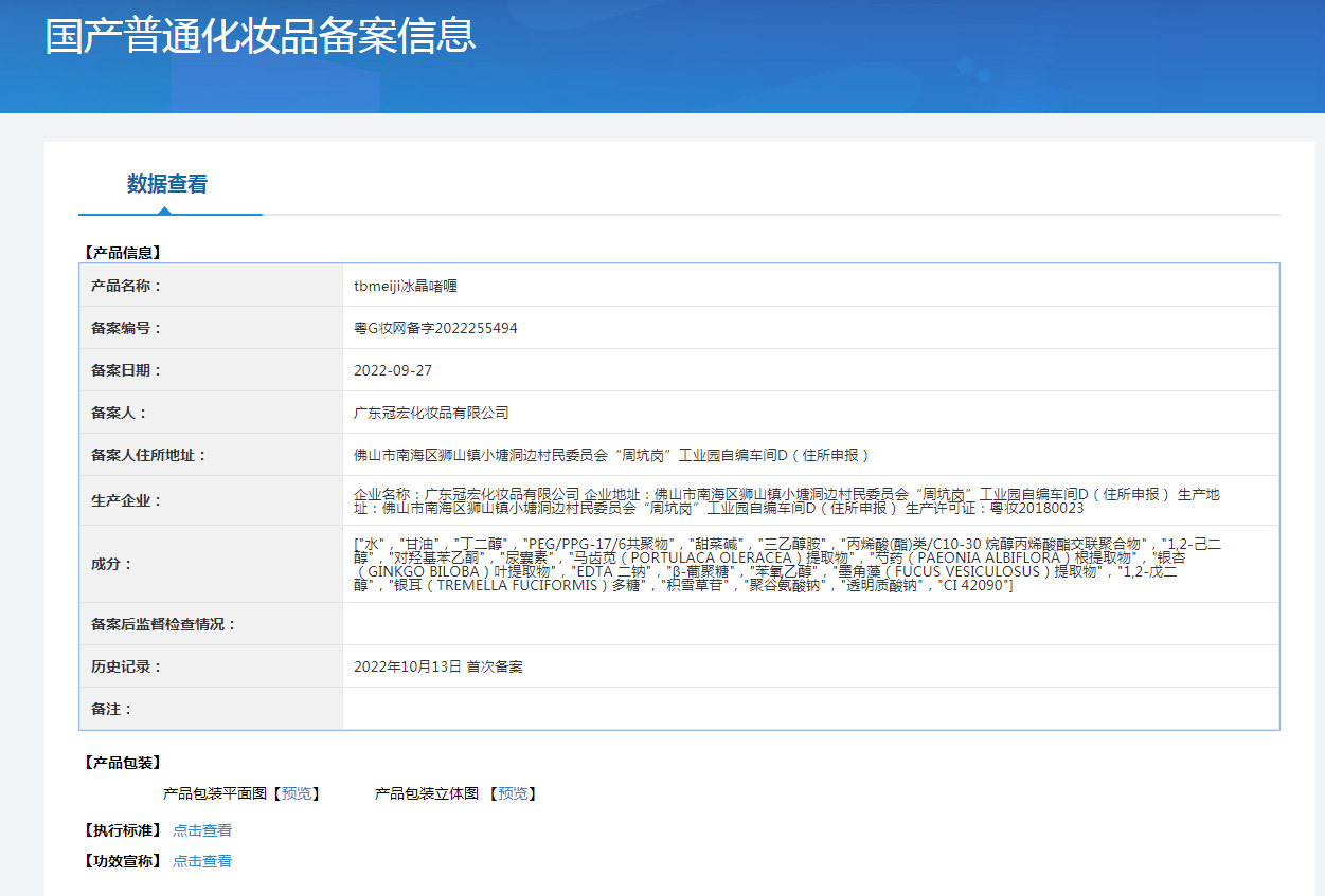 Номер сертификата регистрации несpecial косметики Guangdong g makeup network preparation number 2022255494
