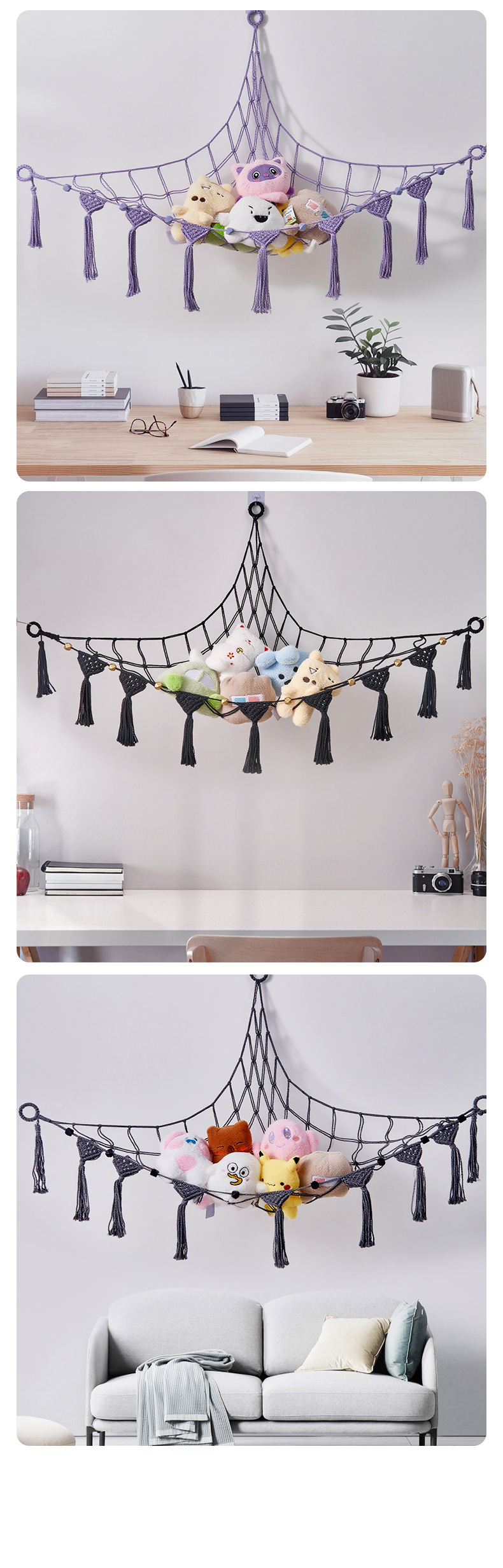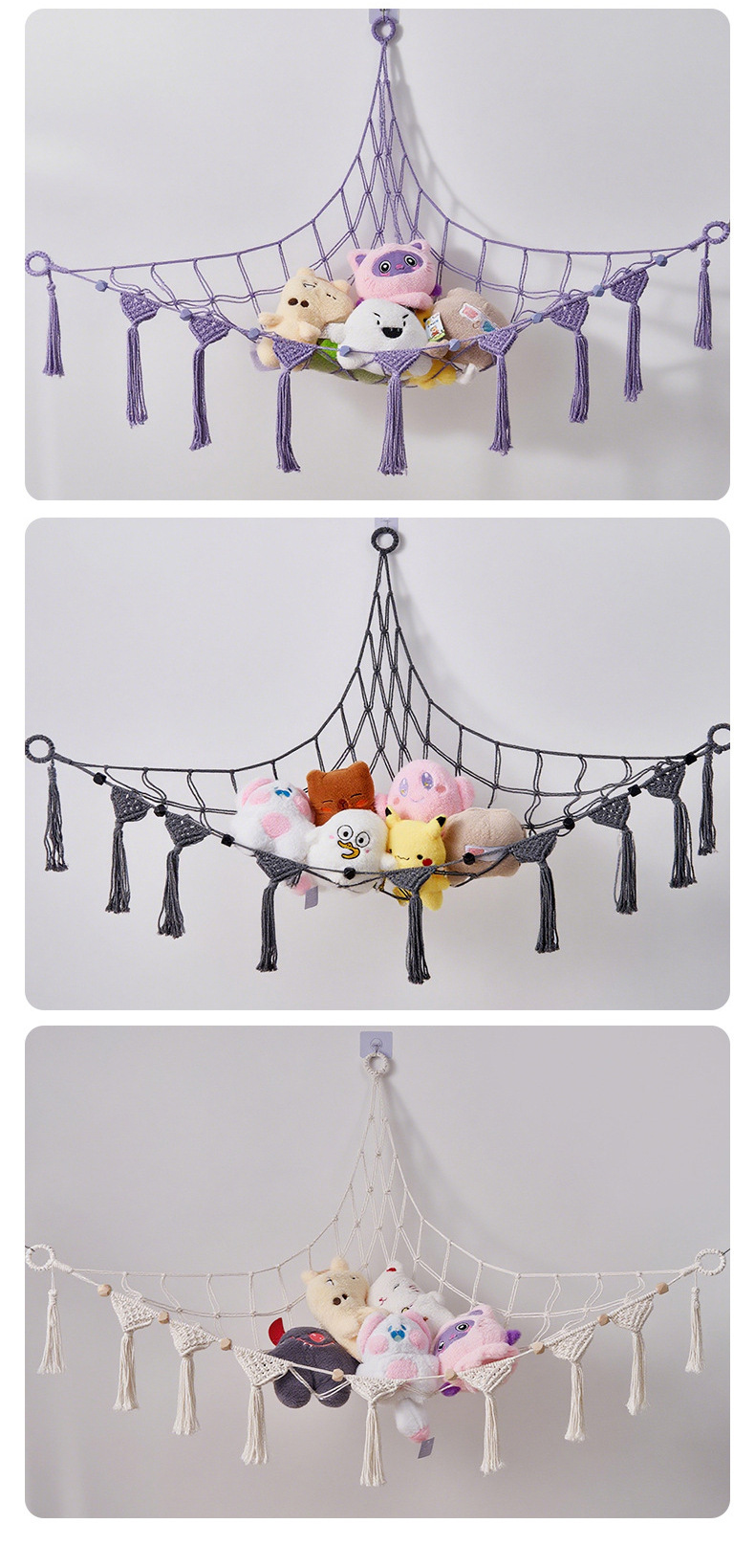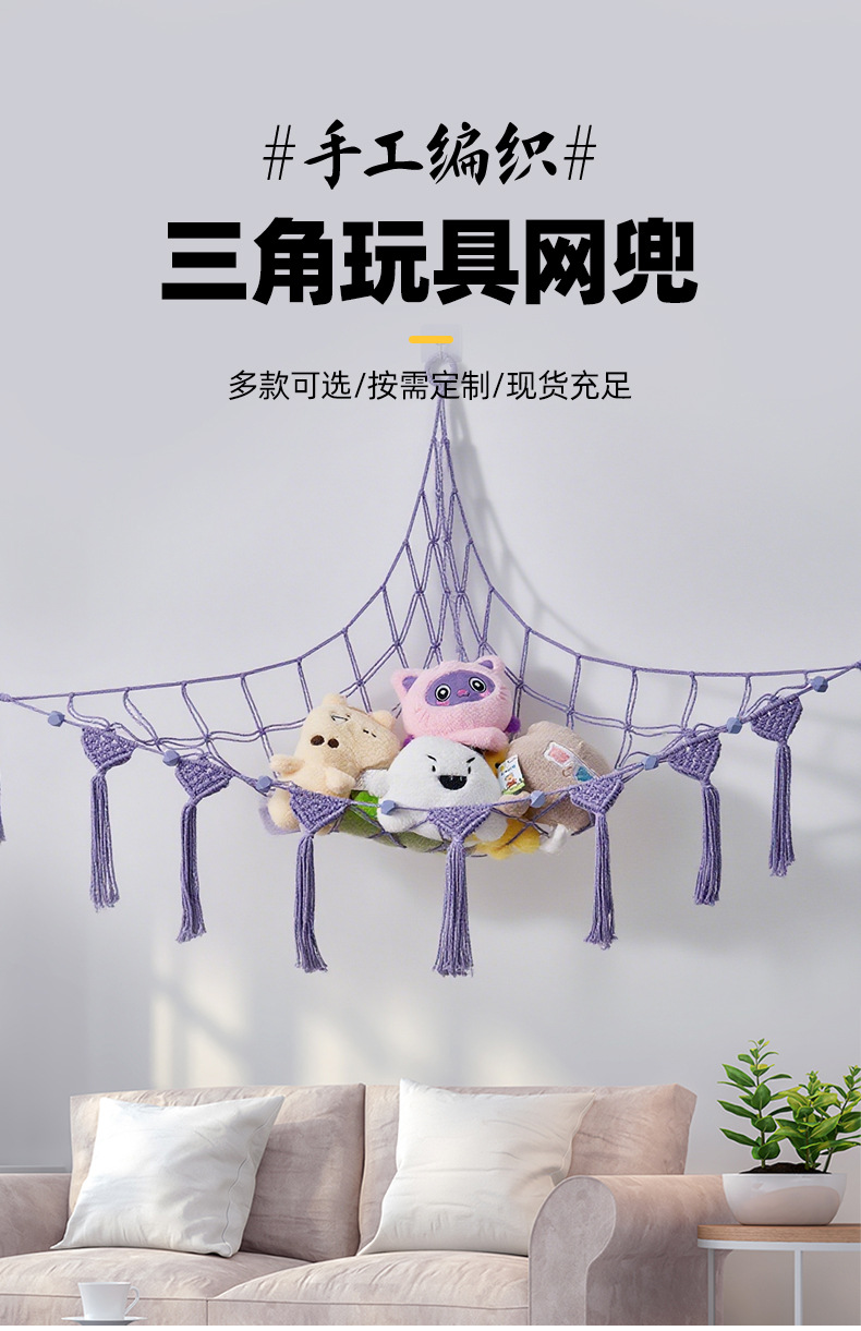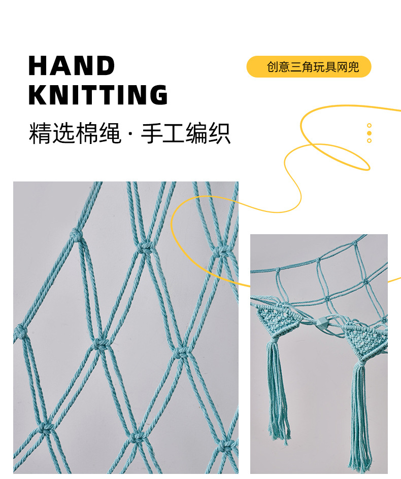 Вязаная сетка для хранения игрушек, треугольный карман, угловая сетка, ручная вязка с кисточками