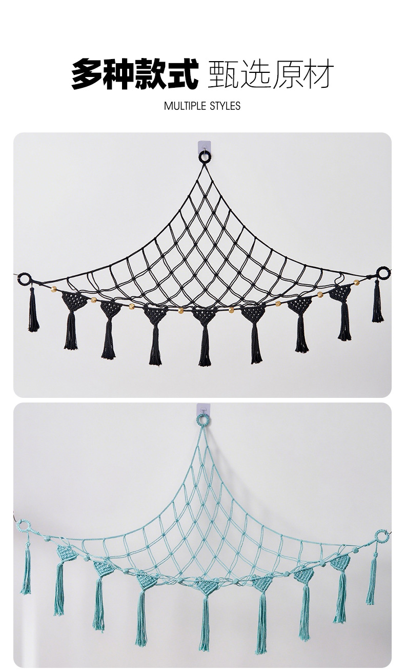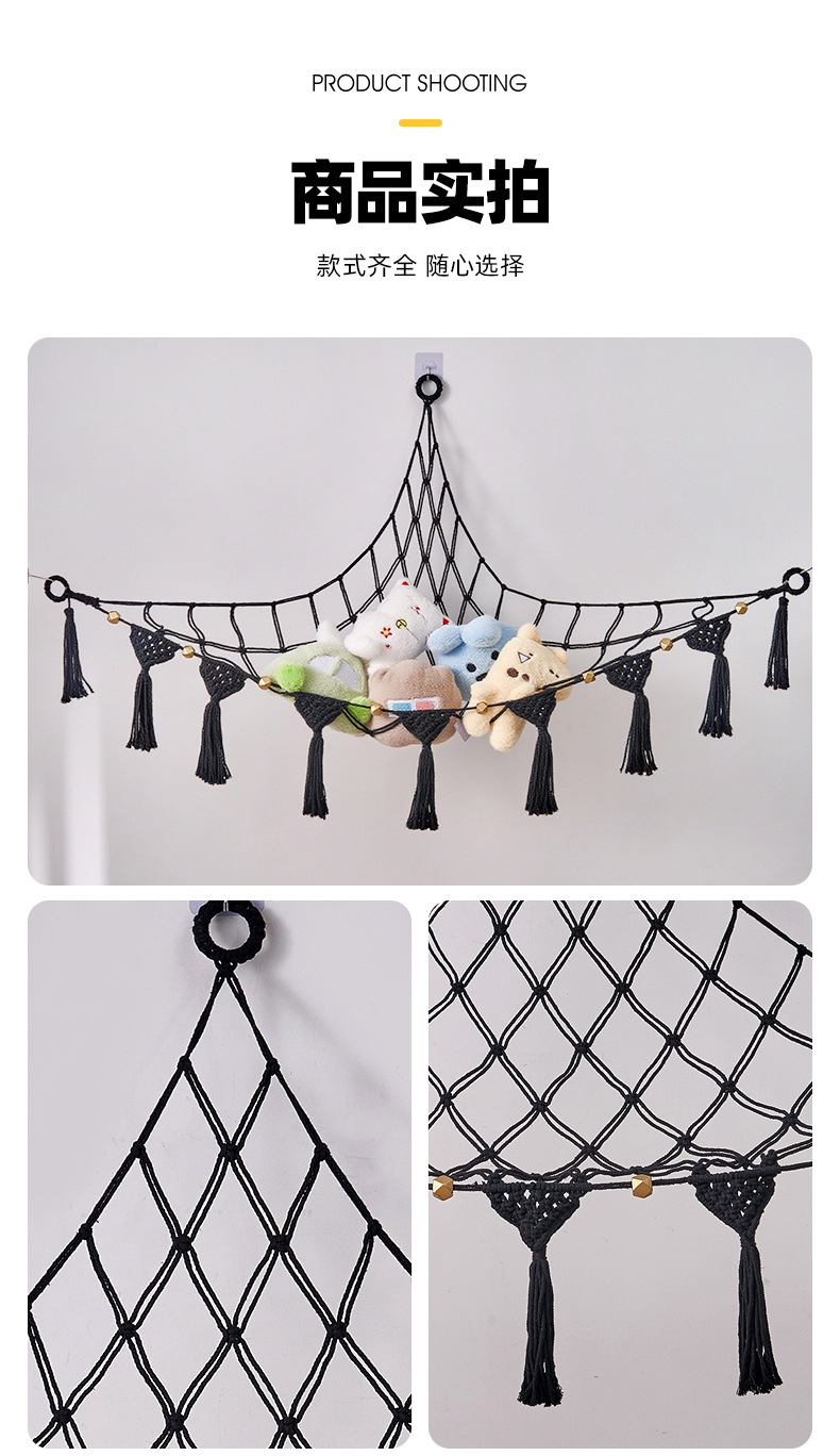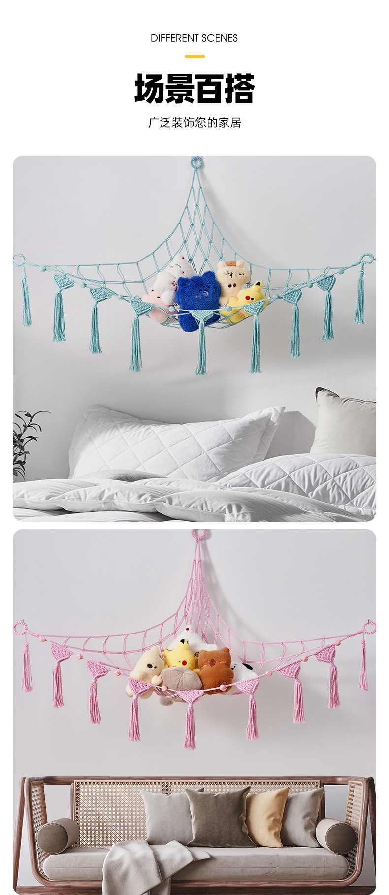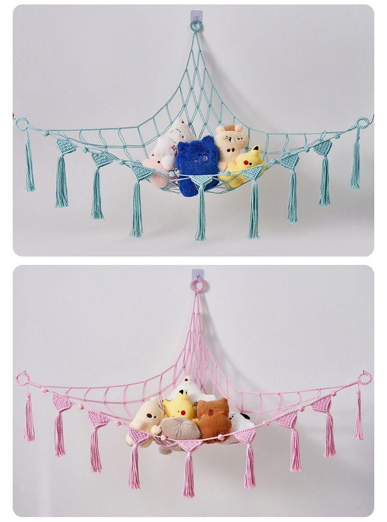 Вязаная сетка для хранения игрушек, треугольный карман, угловая сетка, ручная вязка с кисточками