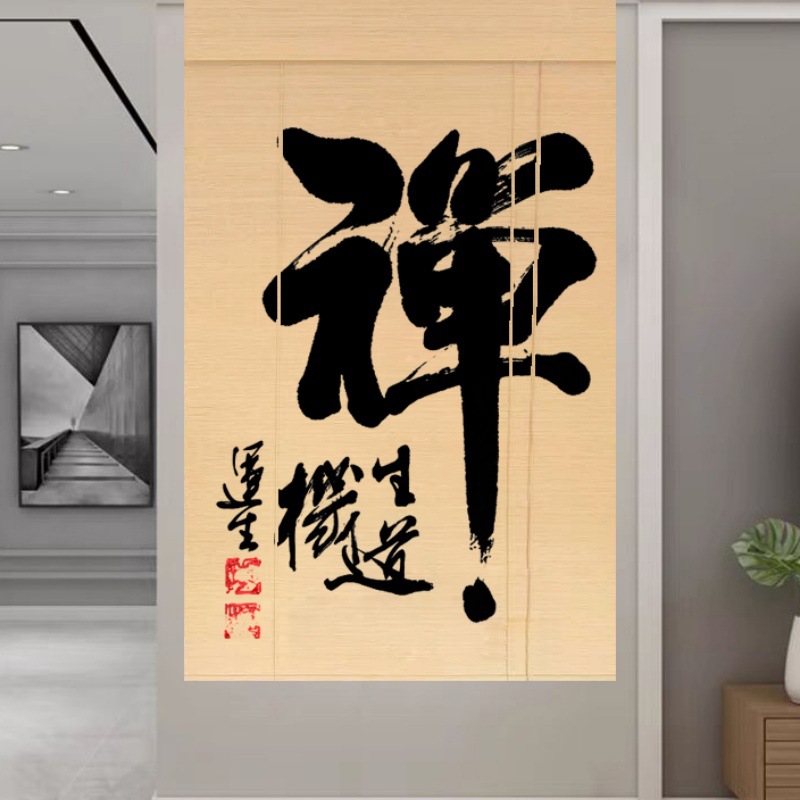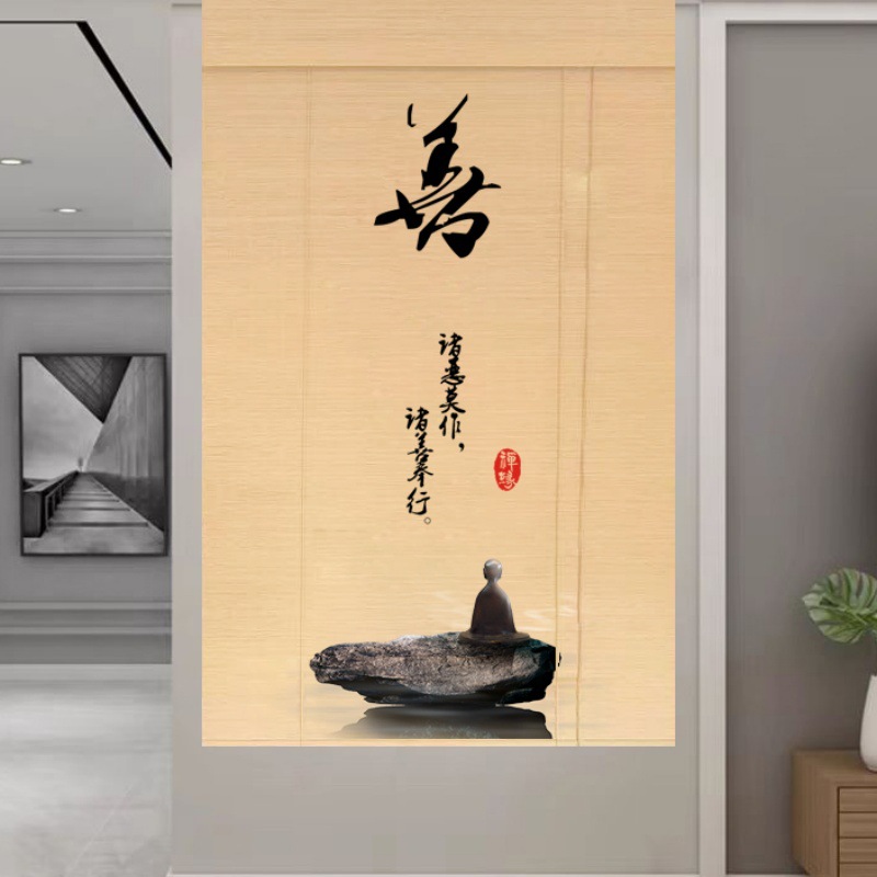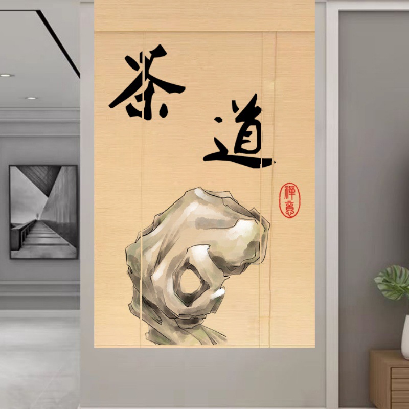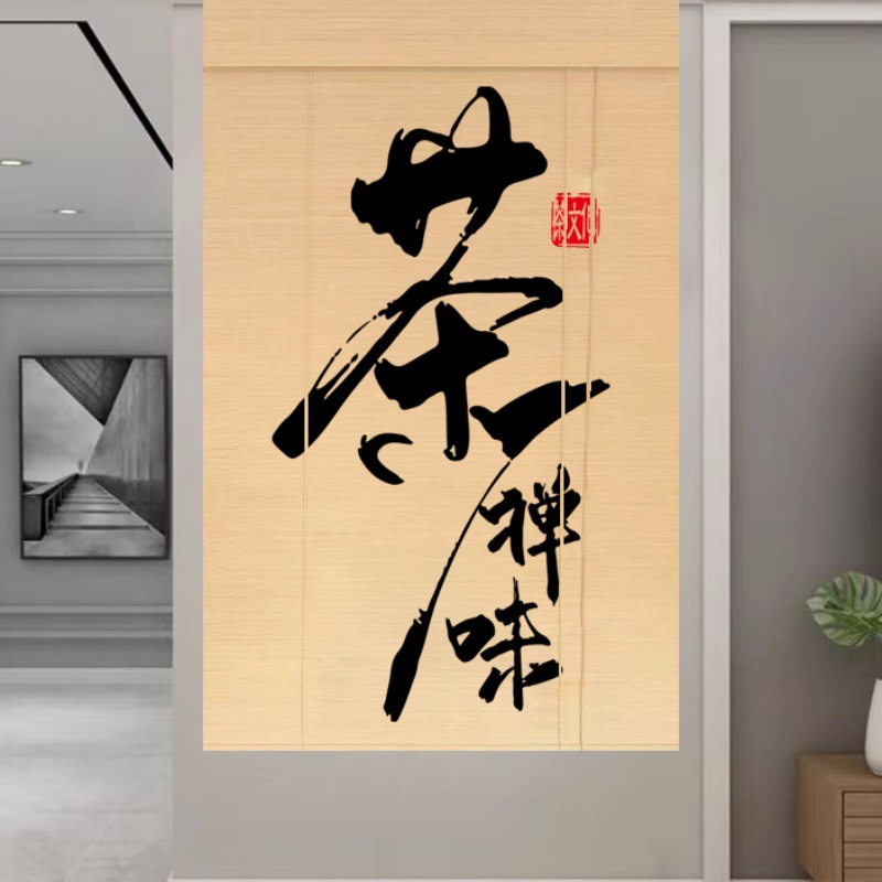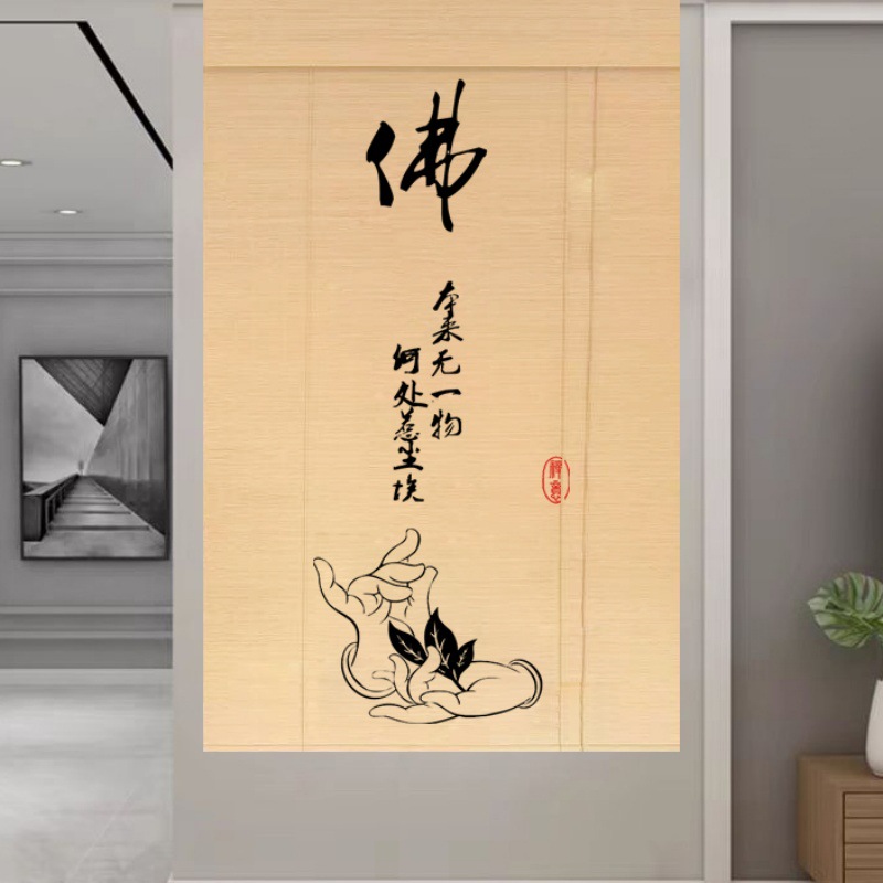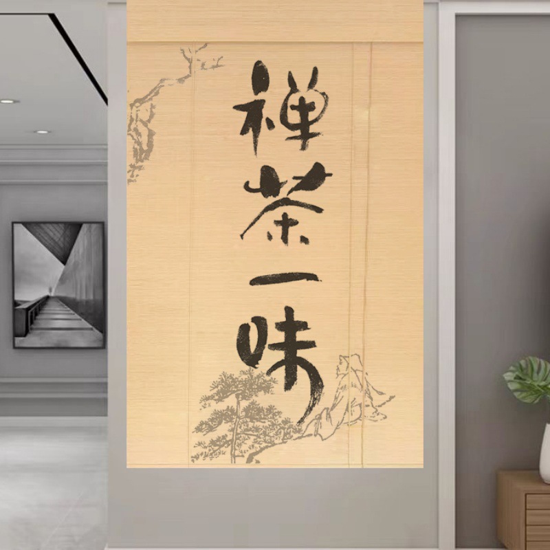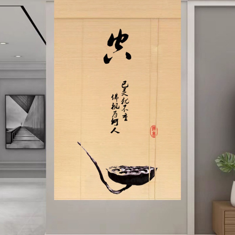 Штора для двери чайной без сверления, текстильная кухня, дзен-учеба, каллиграфия, бамбуковая штора, роликовая штора в новом китайском стиле