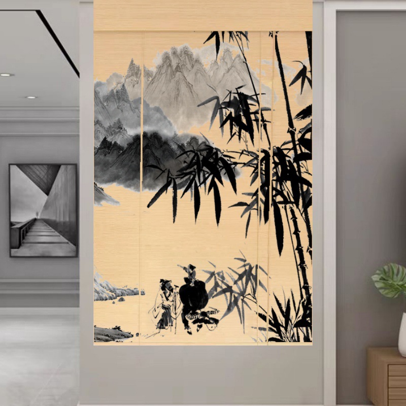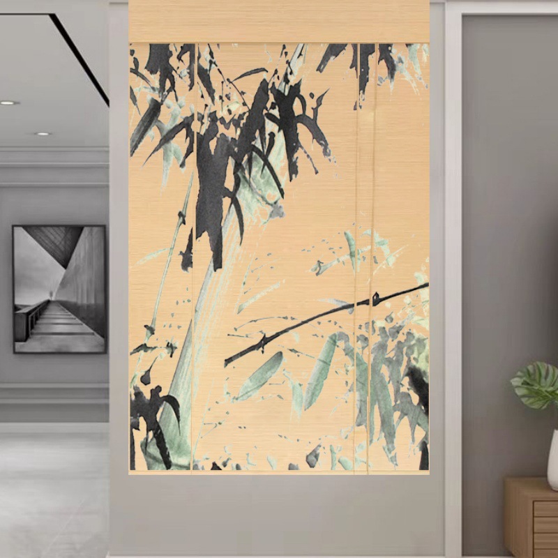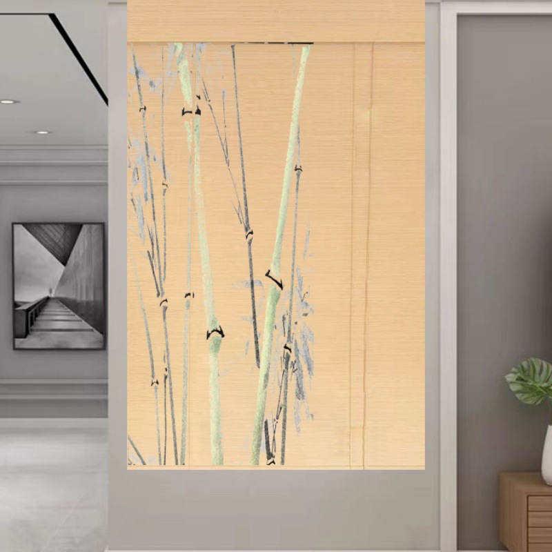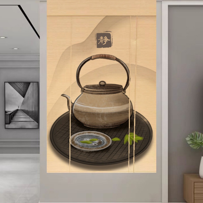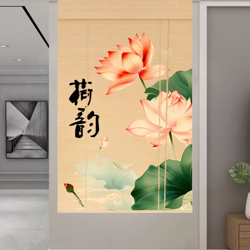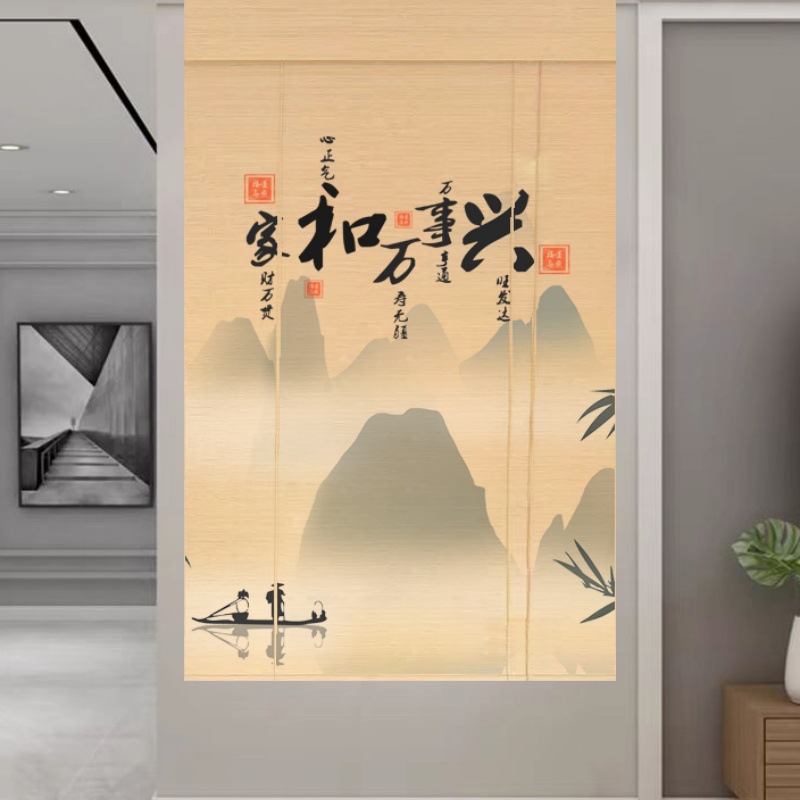 Штора для двери чайной без сверления, текстильная кухня, дзен-учеба, каллиграфия, бамбуковая штора, роликовая штора в новом китайском стиле