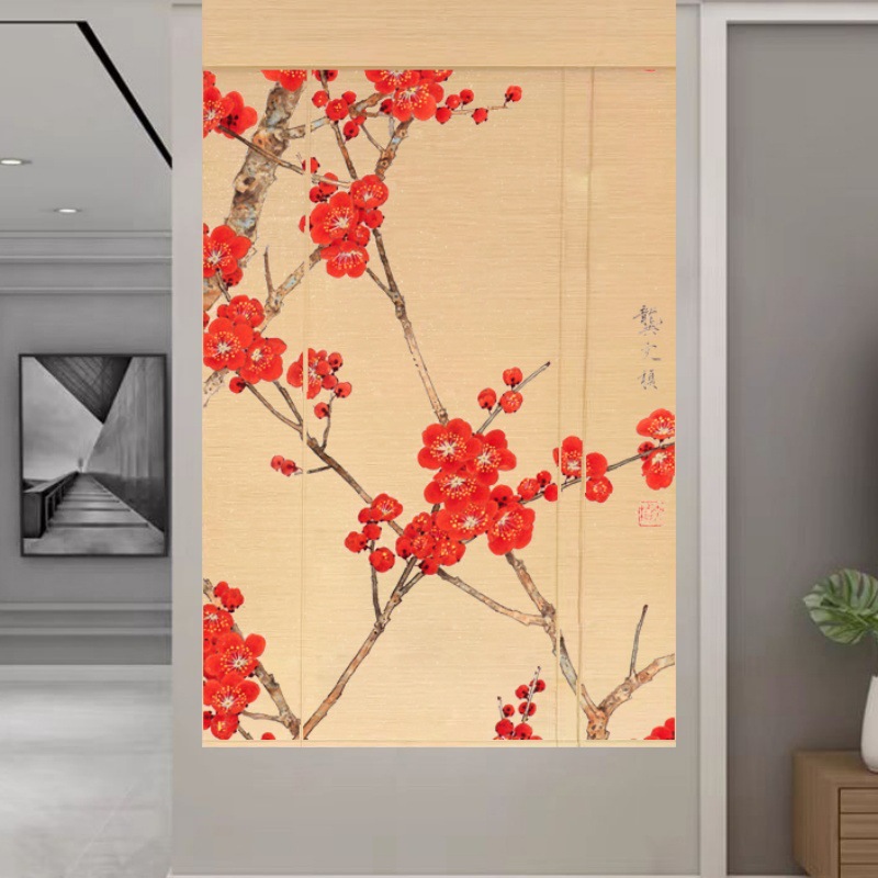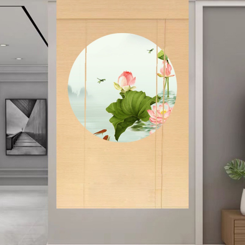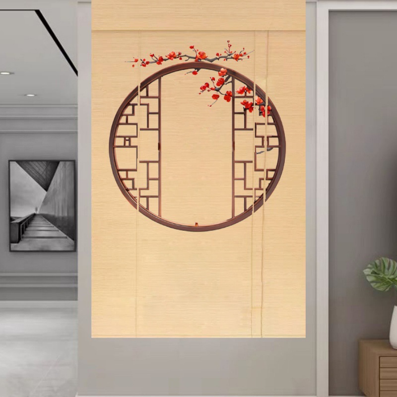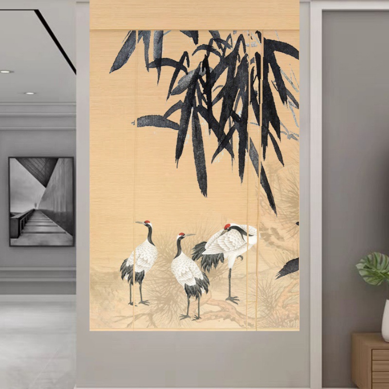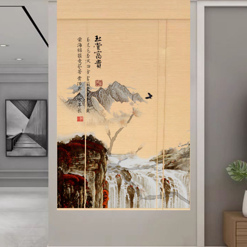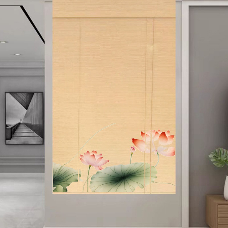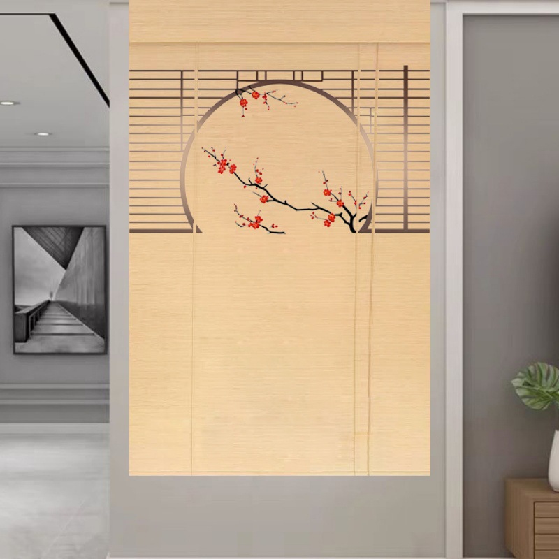 Штора для двери чайной без сверления, текстильная кухня, дзен-учеба, каллиграфия, бамбуковая штора, роликовая штора в новом китайском стиле