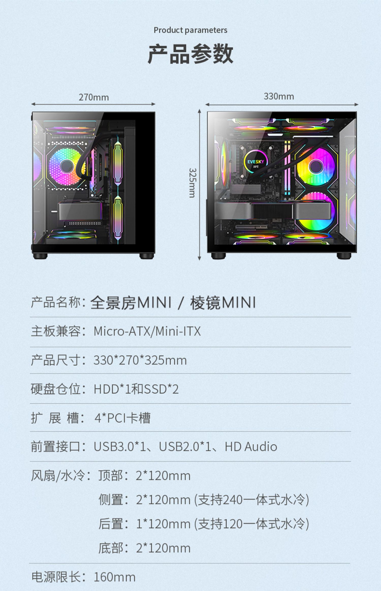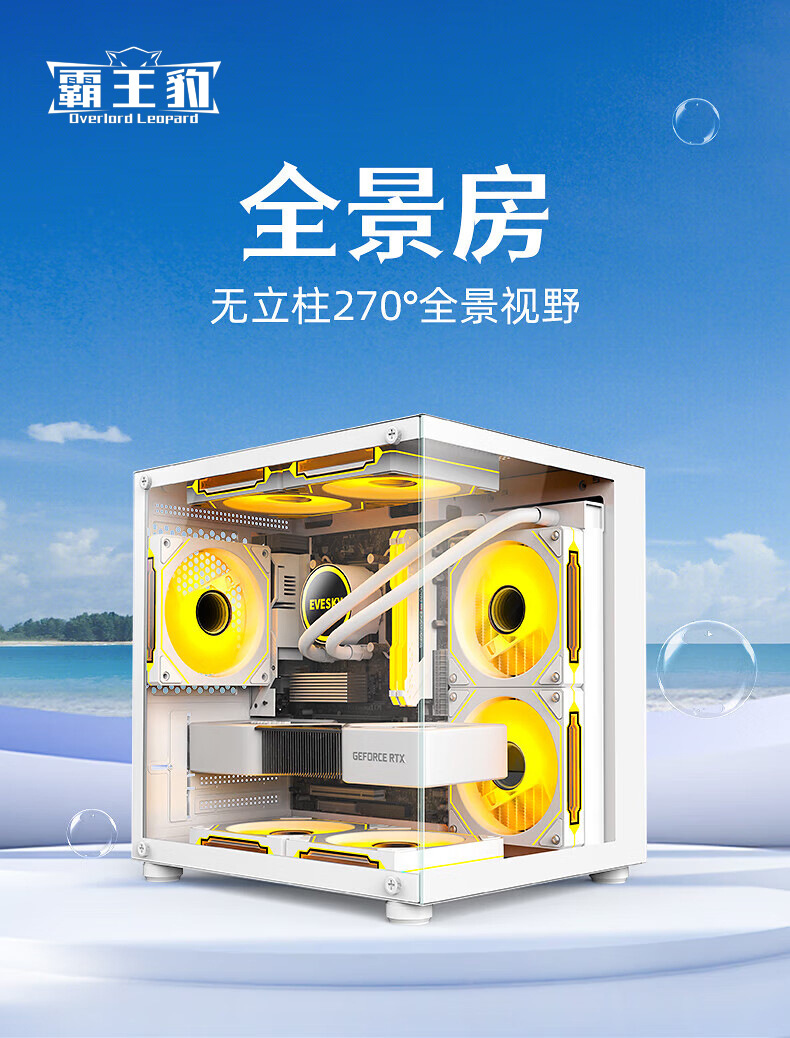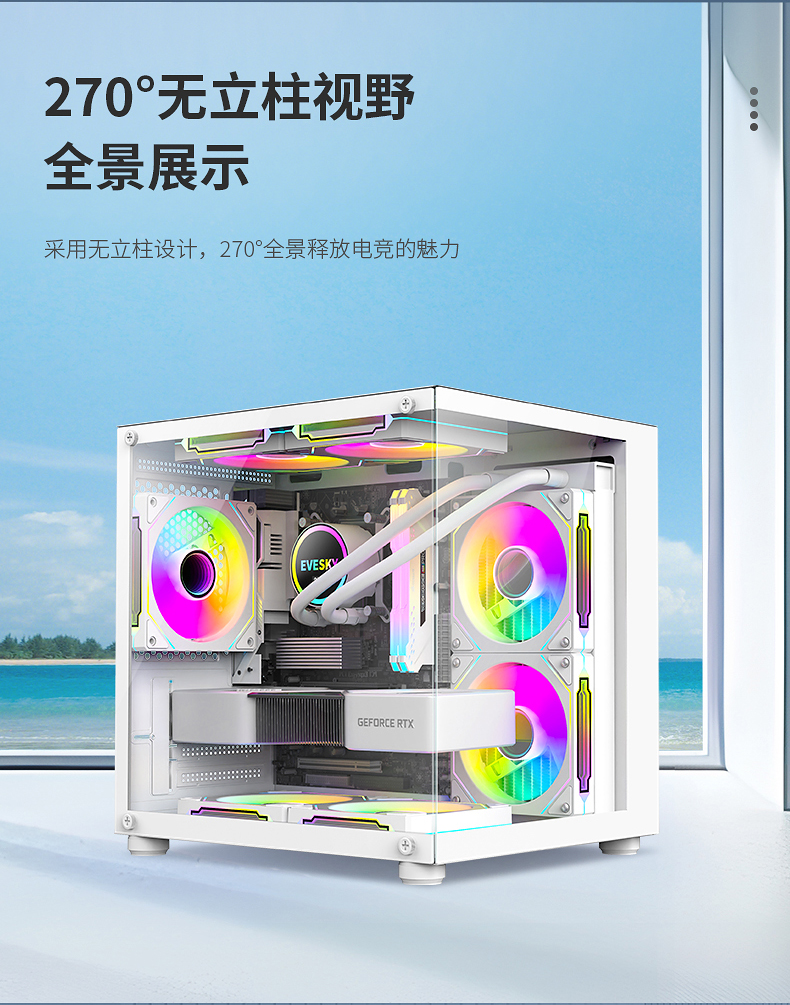 Корпус для ПК Columnless Prism Mini Sea View без колонн, настольный, материнская плата Matx, водяное охлаждение, прозрачный боковой, белый, игровой, Itx