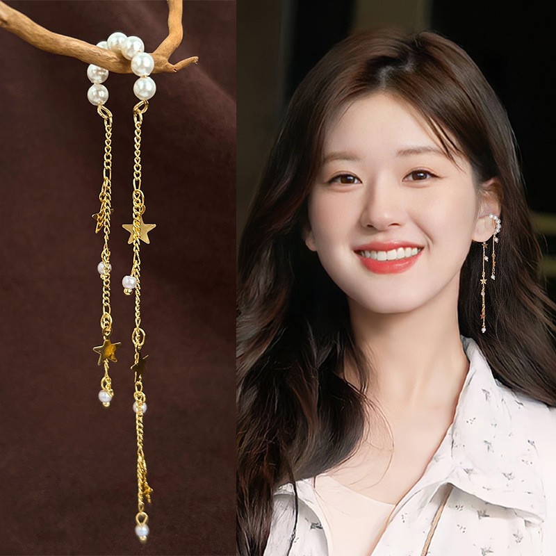 Серьги-клипсы с кисточками Pearl Star для женщин, модные и стильные, длинные, простые и изысканные, универсальные