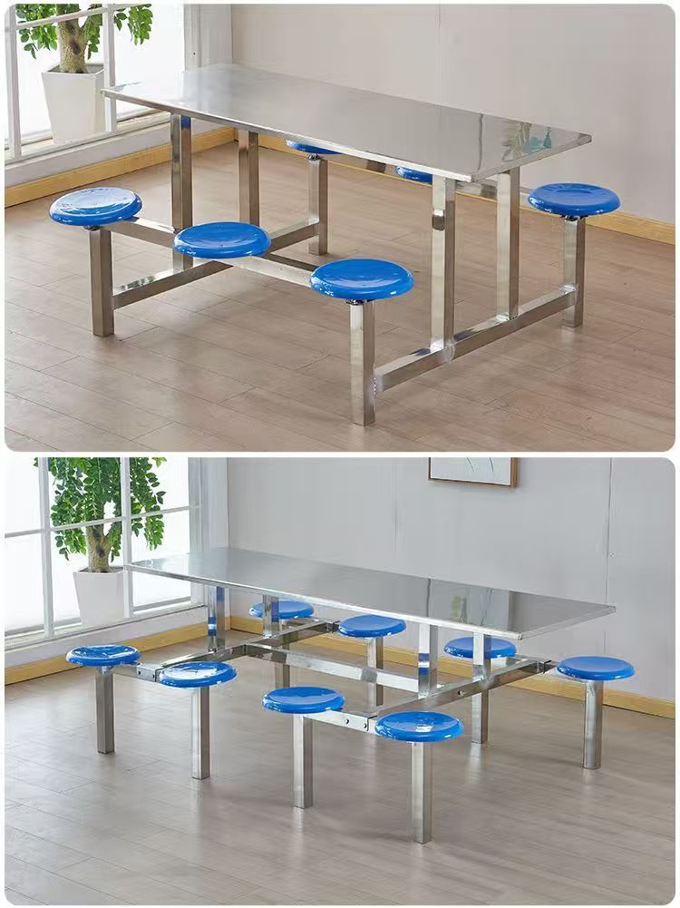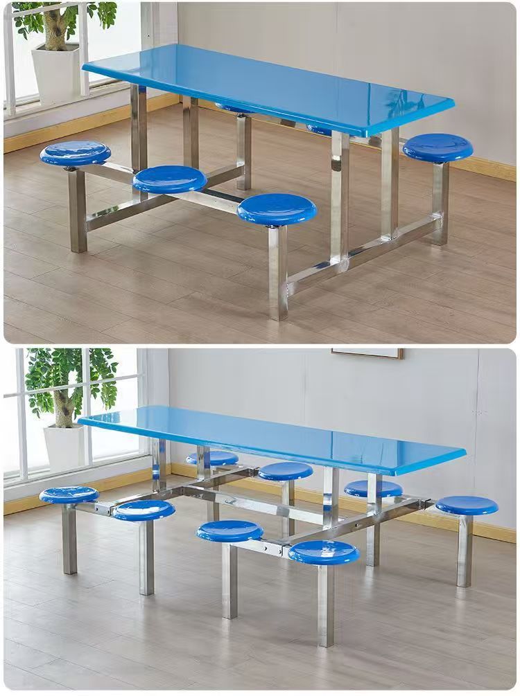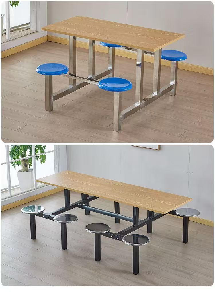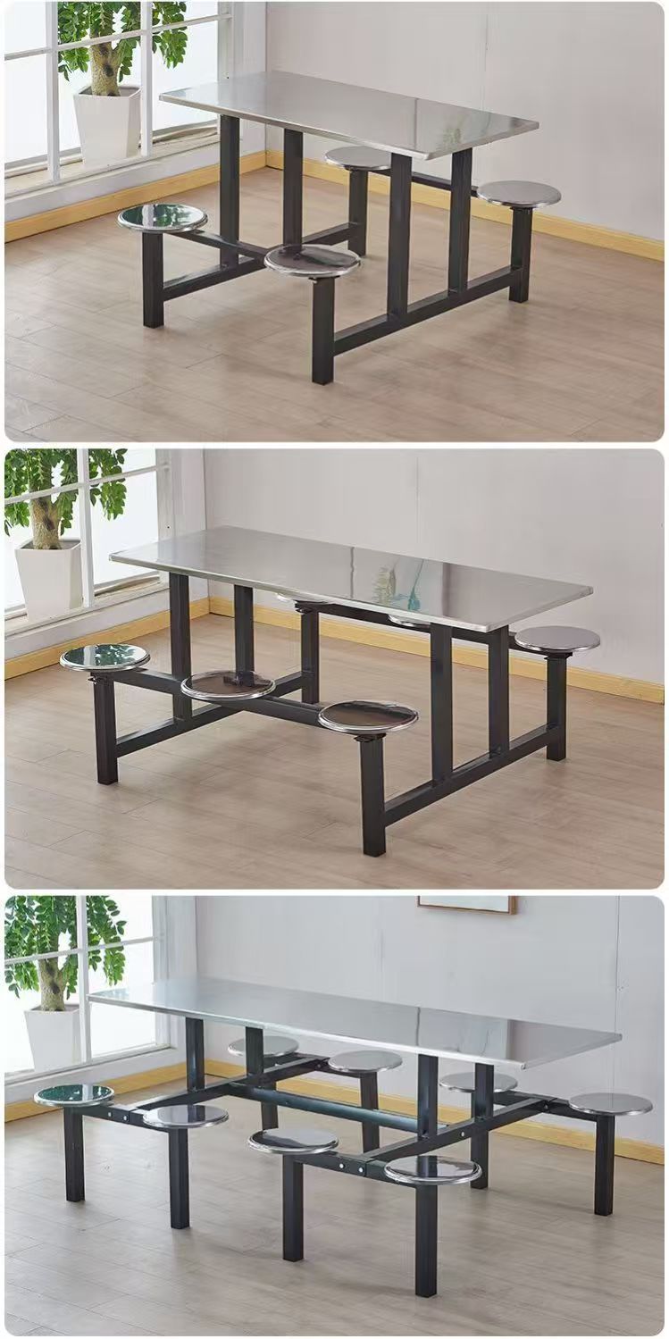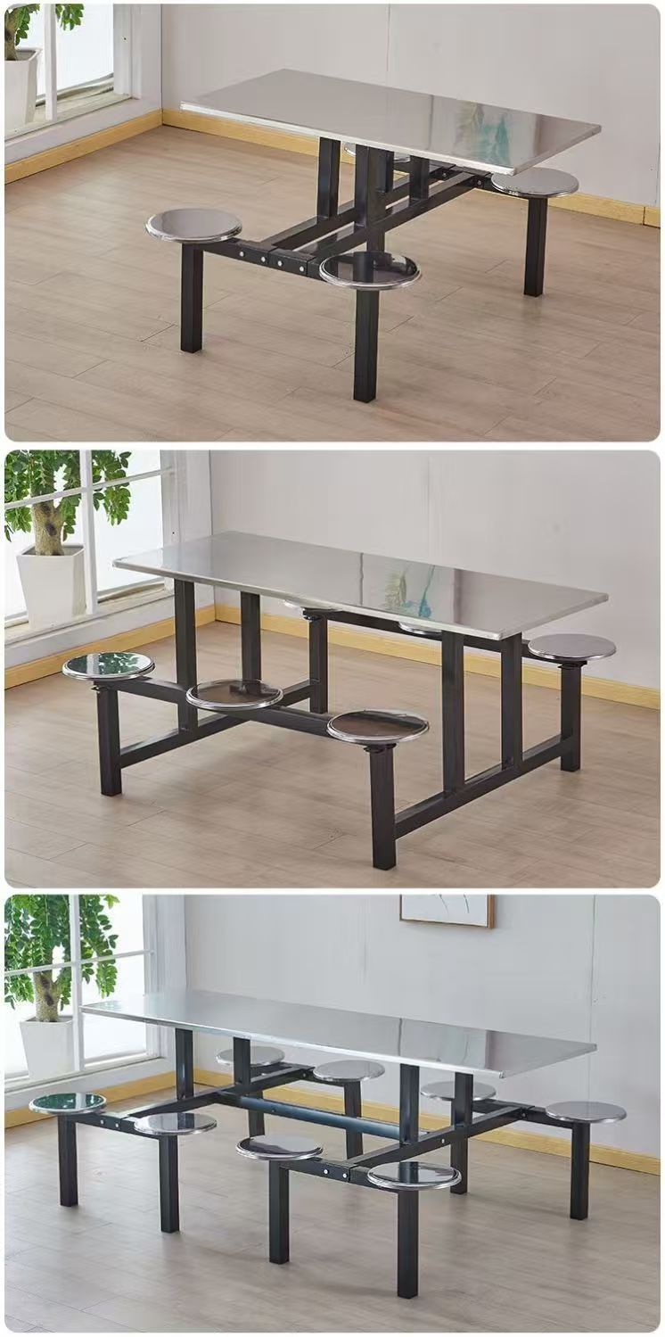 Комплект стола и стульев для школьной столовой на 4, 6, 8 человек, интегрированный стол и стулья из нержавеющей стали для студентов и сотрудников