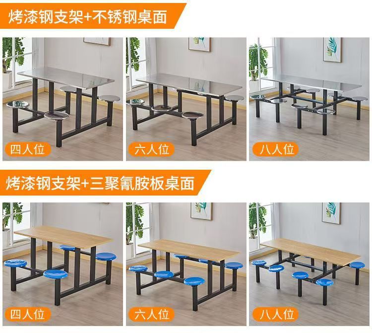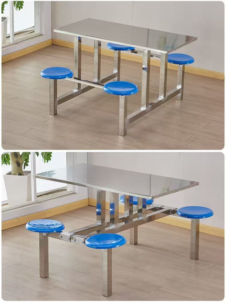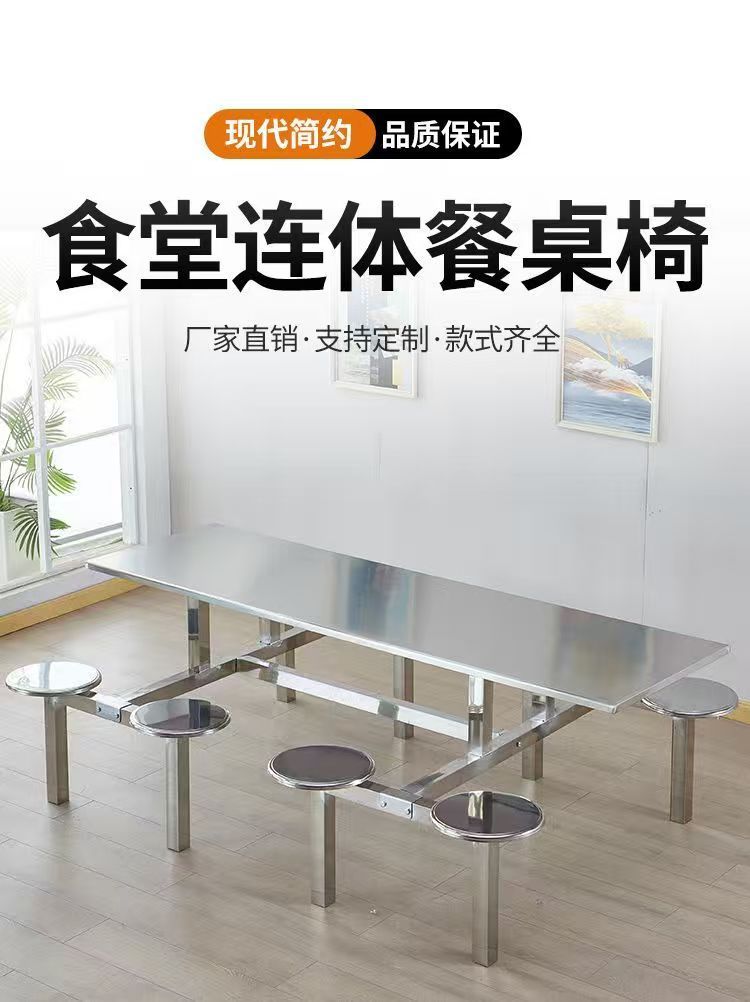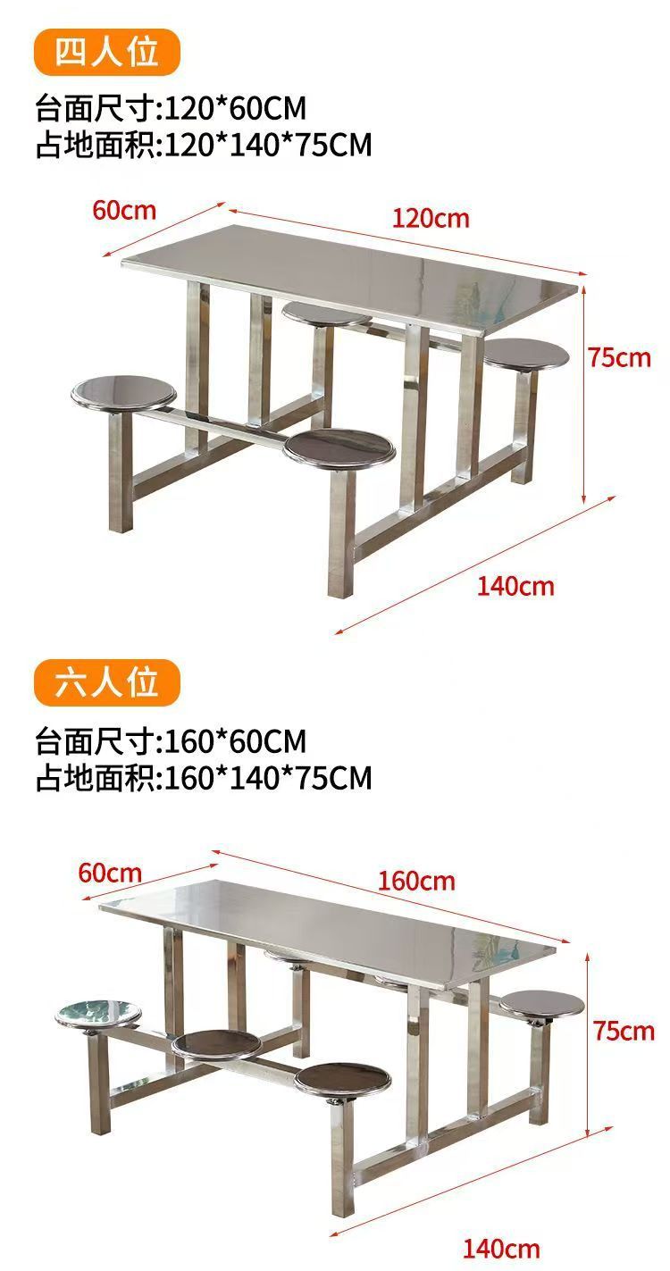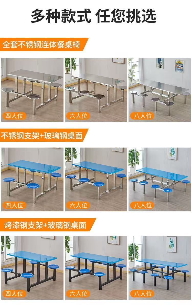 Комплект стола и стульев для школьной столовой на 4, 6, 8 человек, интегрированный стол и стулья из нержавеющей стали для студентов и сотрудников