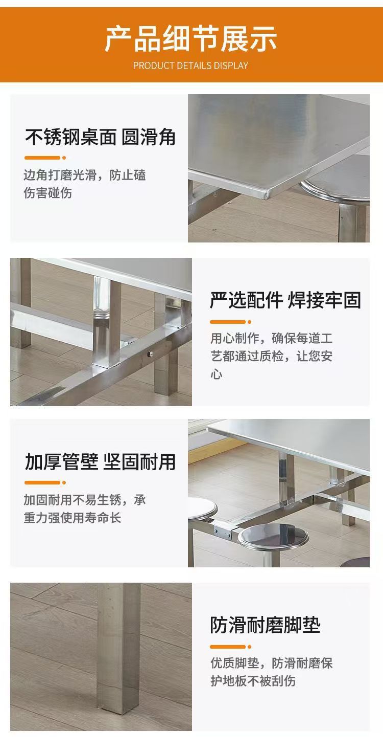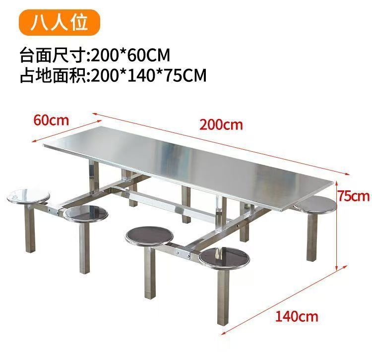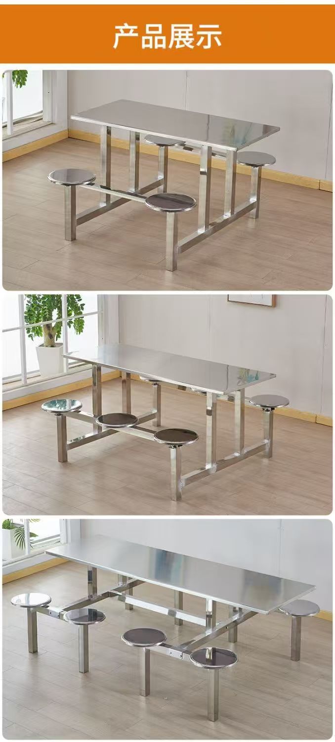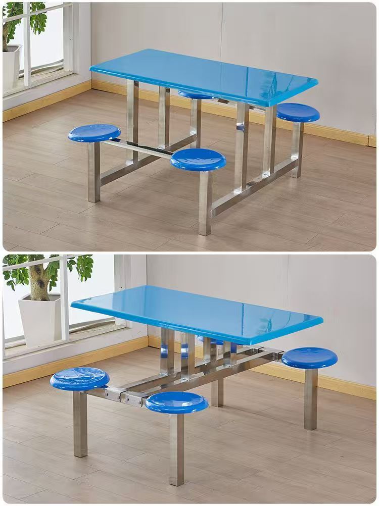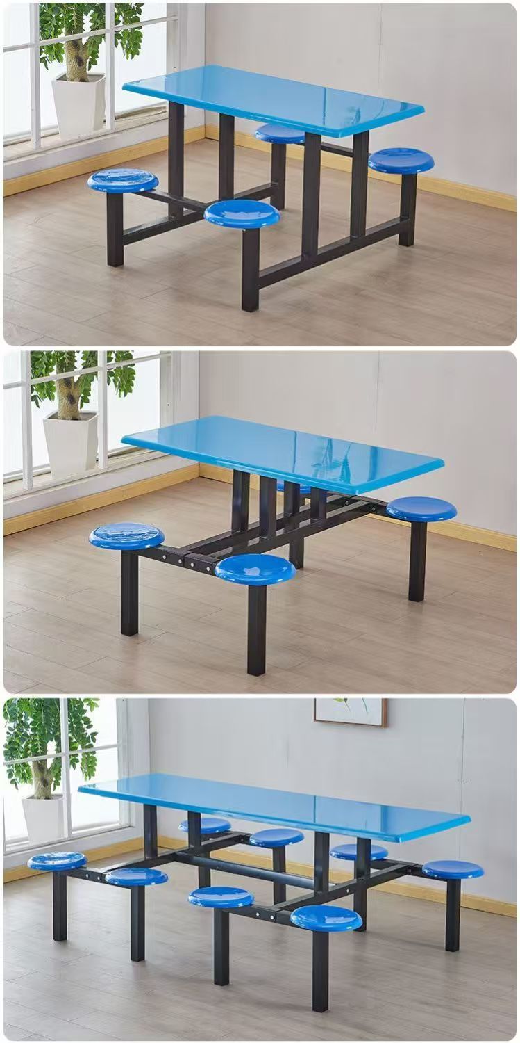 Комплект стола и стульев для школьной столовой на 4, 6, 8 человек, интегрированный стол и стулья из нержавеющей стали для студентов и сотрудников