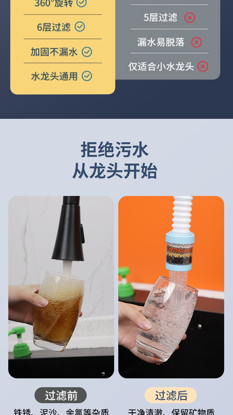 Новый универсальный съемный и washable шестислойный фильтр для крана, защитный от брызг, для экономии воды в домашней кухне