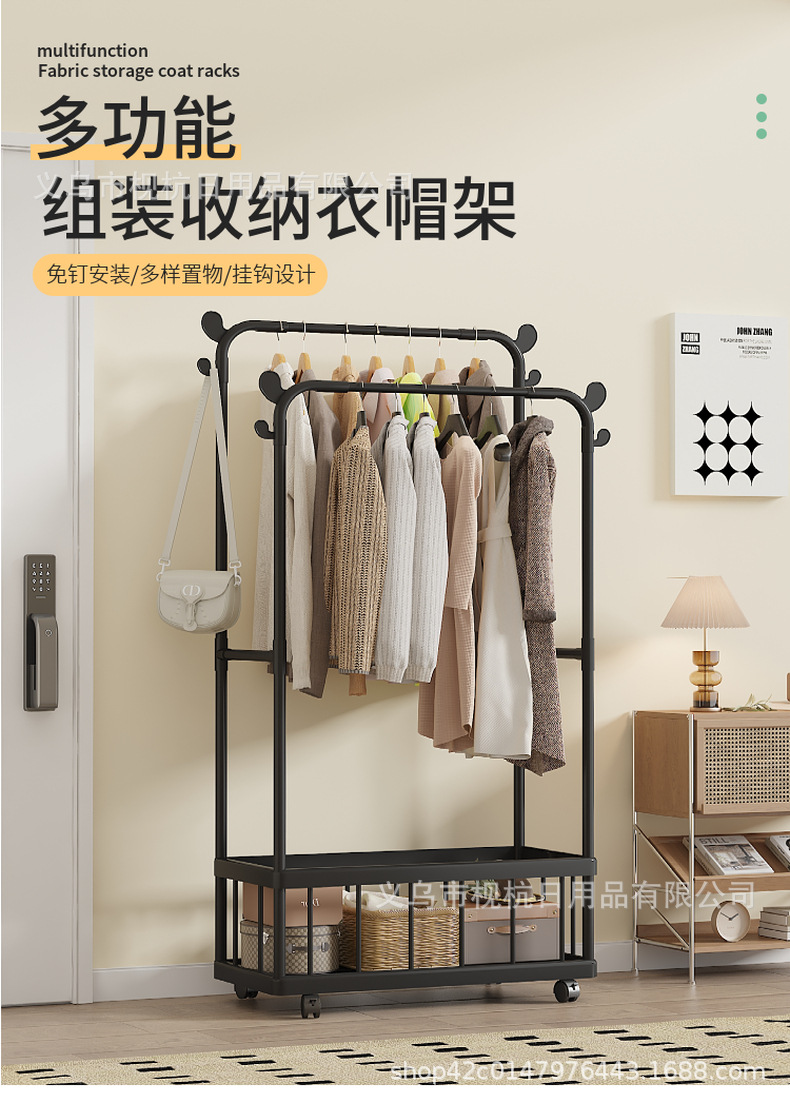 Легкий роскошный вешалка для одежды, современный металлический, простой, напольный, с колесами, съемный, для хранения одежды дома