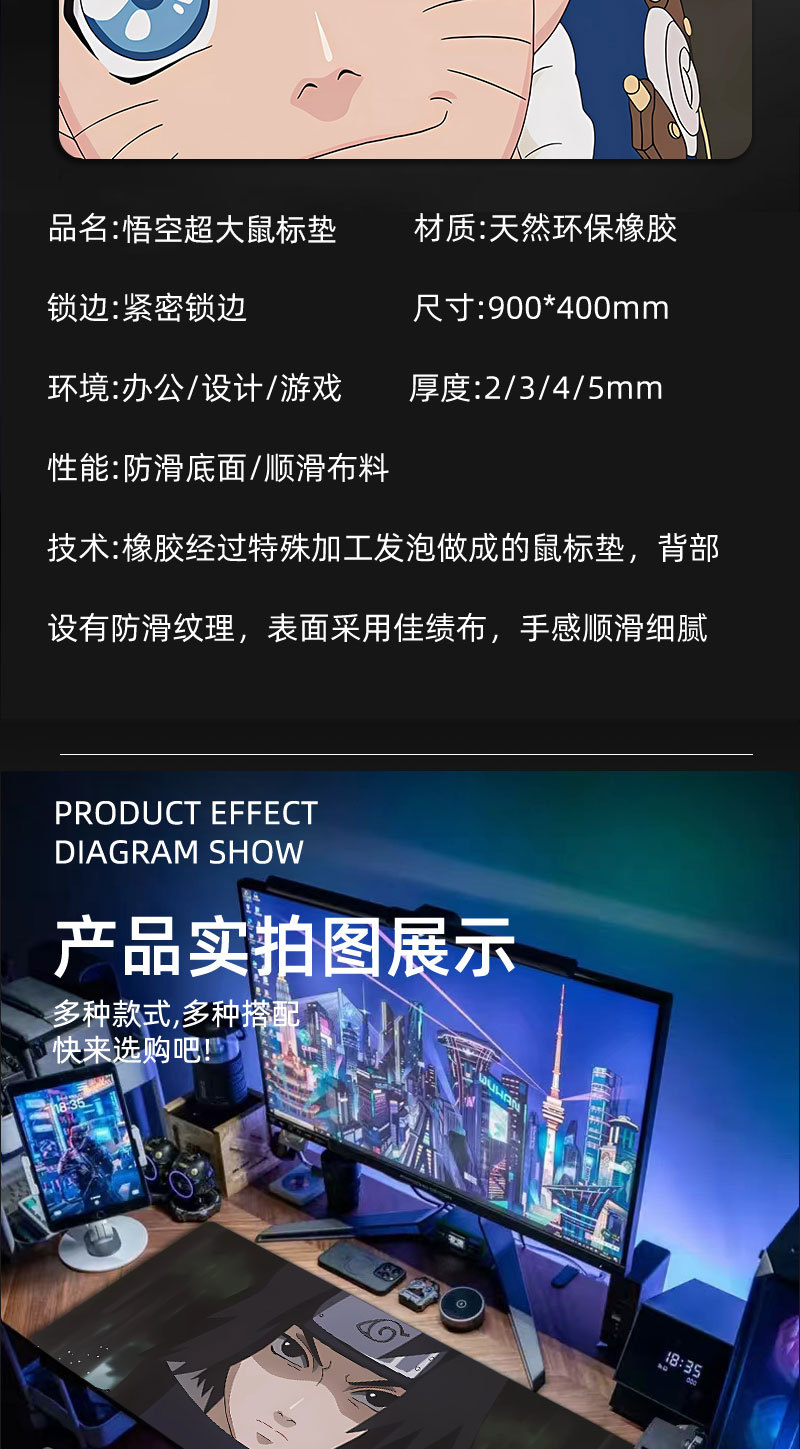 Аниме коврик для мыши Naruto Extra Large, коврик для стола, офисный, противоскользящий край, подкладка под клавиатуру, washable