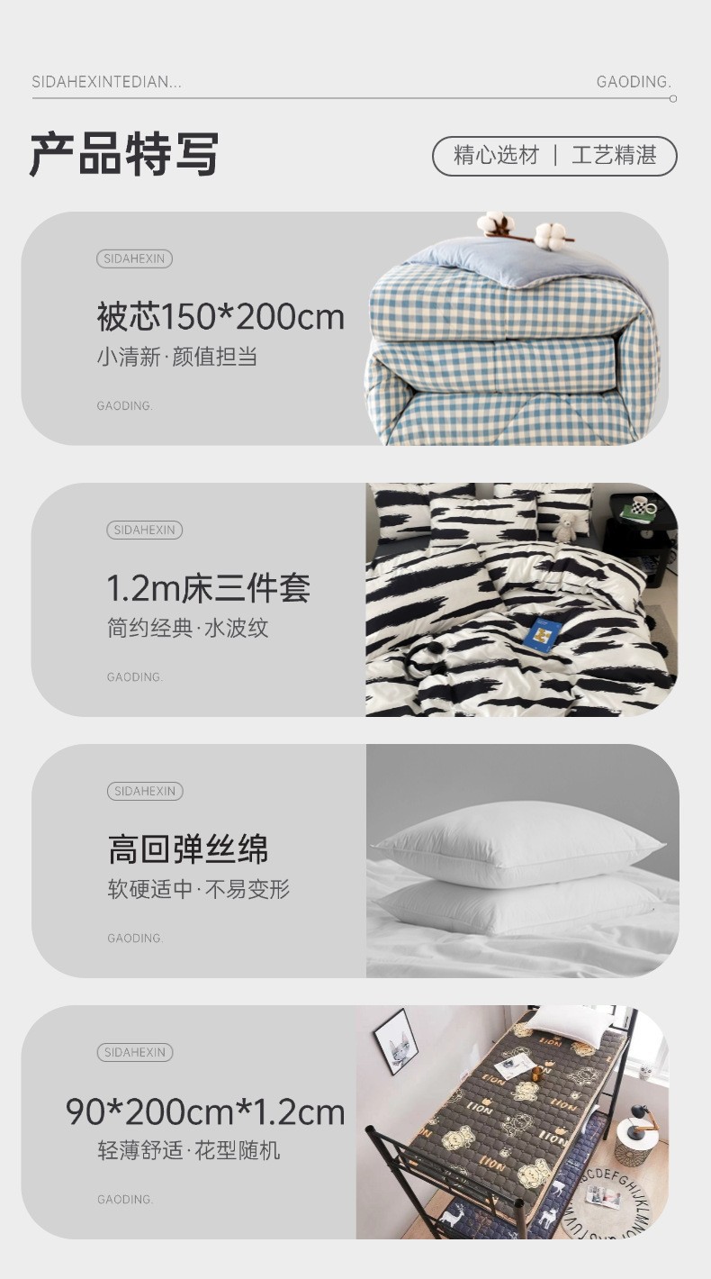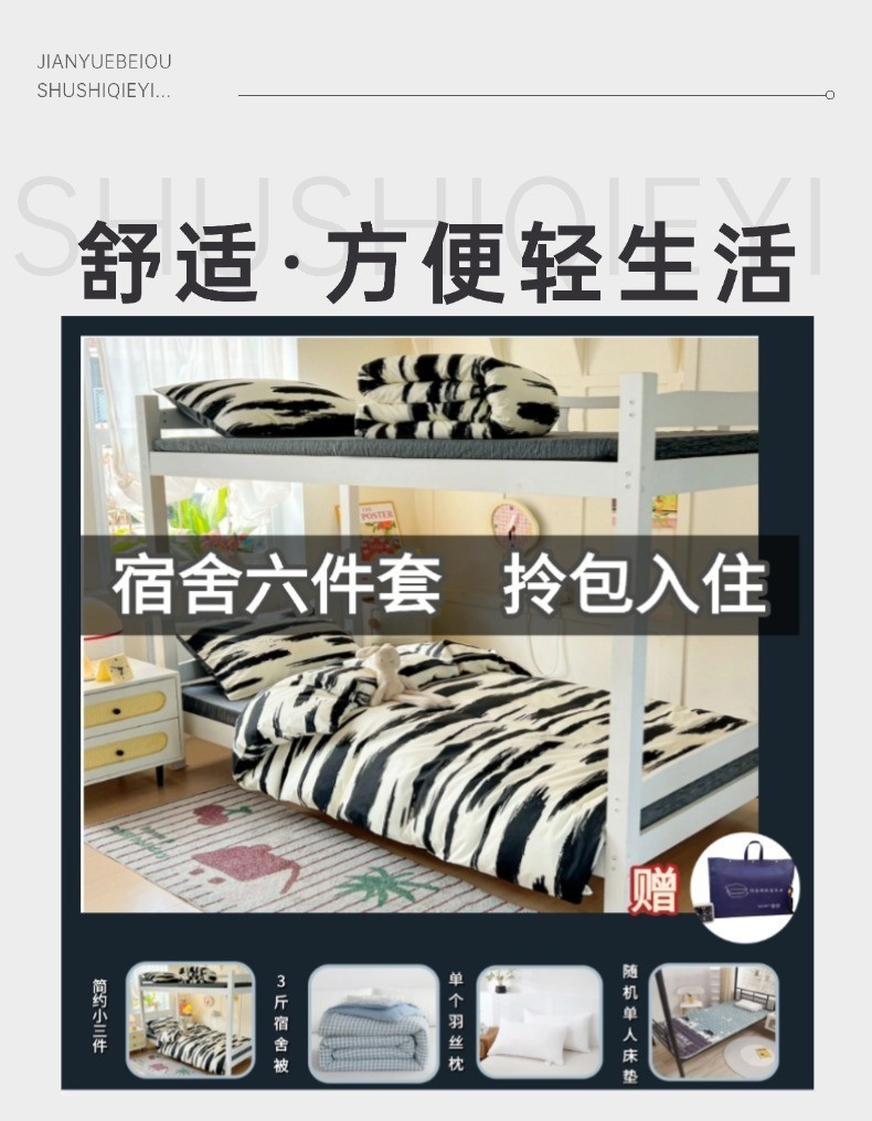 Комплект матраса и одеяла для студентов в общежитии, шесть предметов, всесезонное постельное белье для студентов колледжа