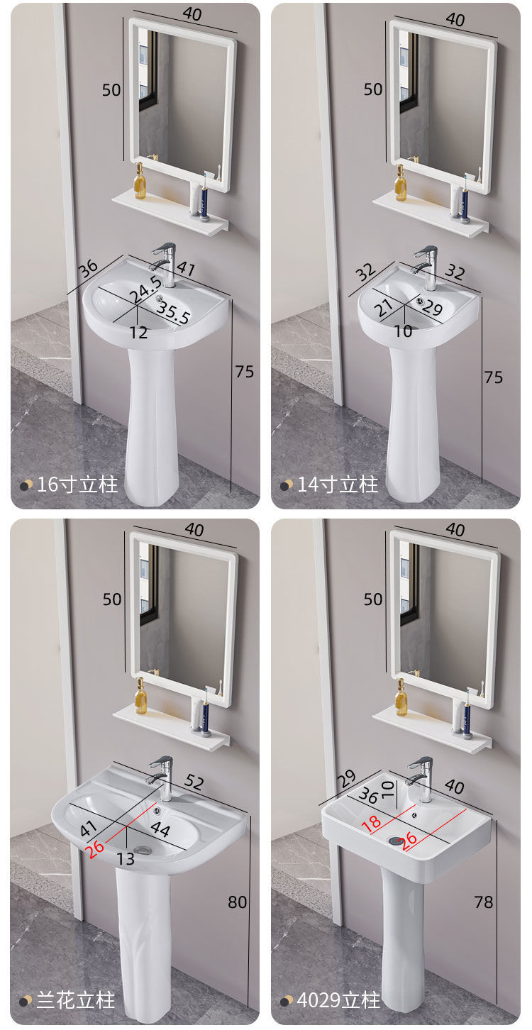 ![]() | 14inch pedestal basin - drain + hot and cold faucet + mirror | ¥123.0 / ≈ 1 482 ₽ | 90 | 6082414022406 | |