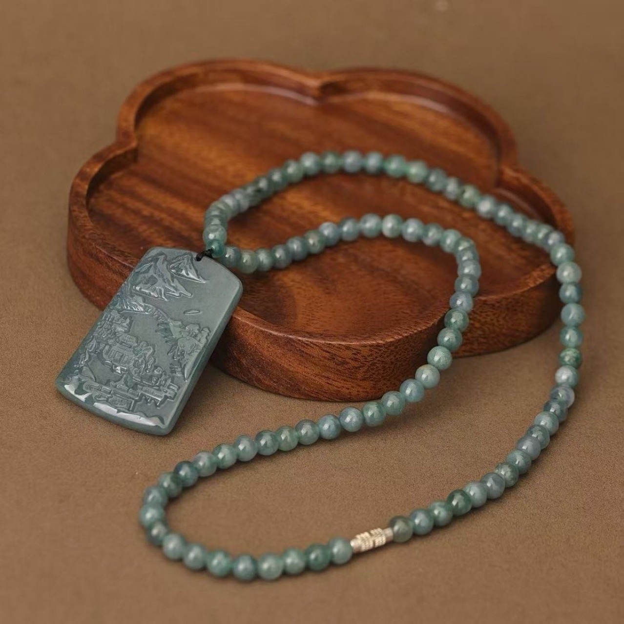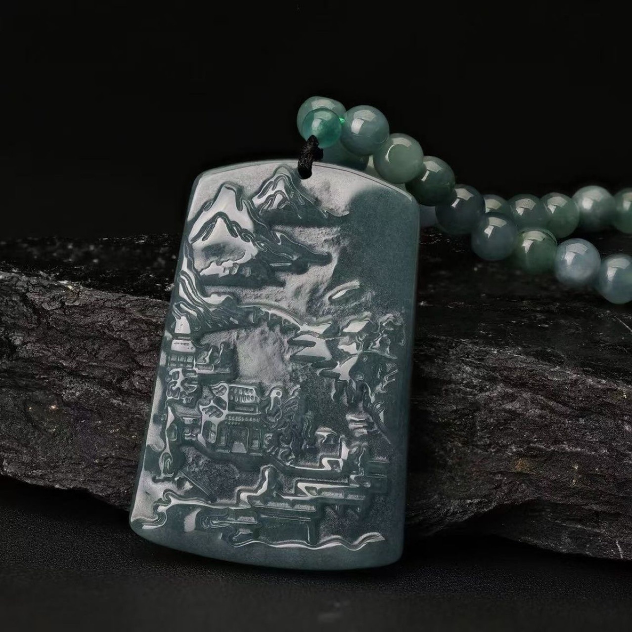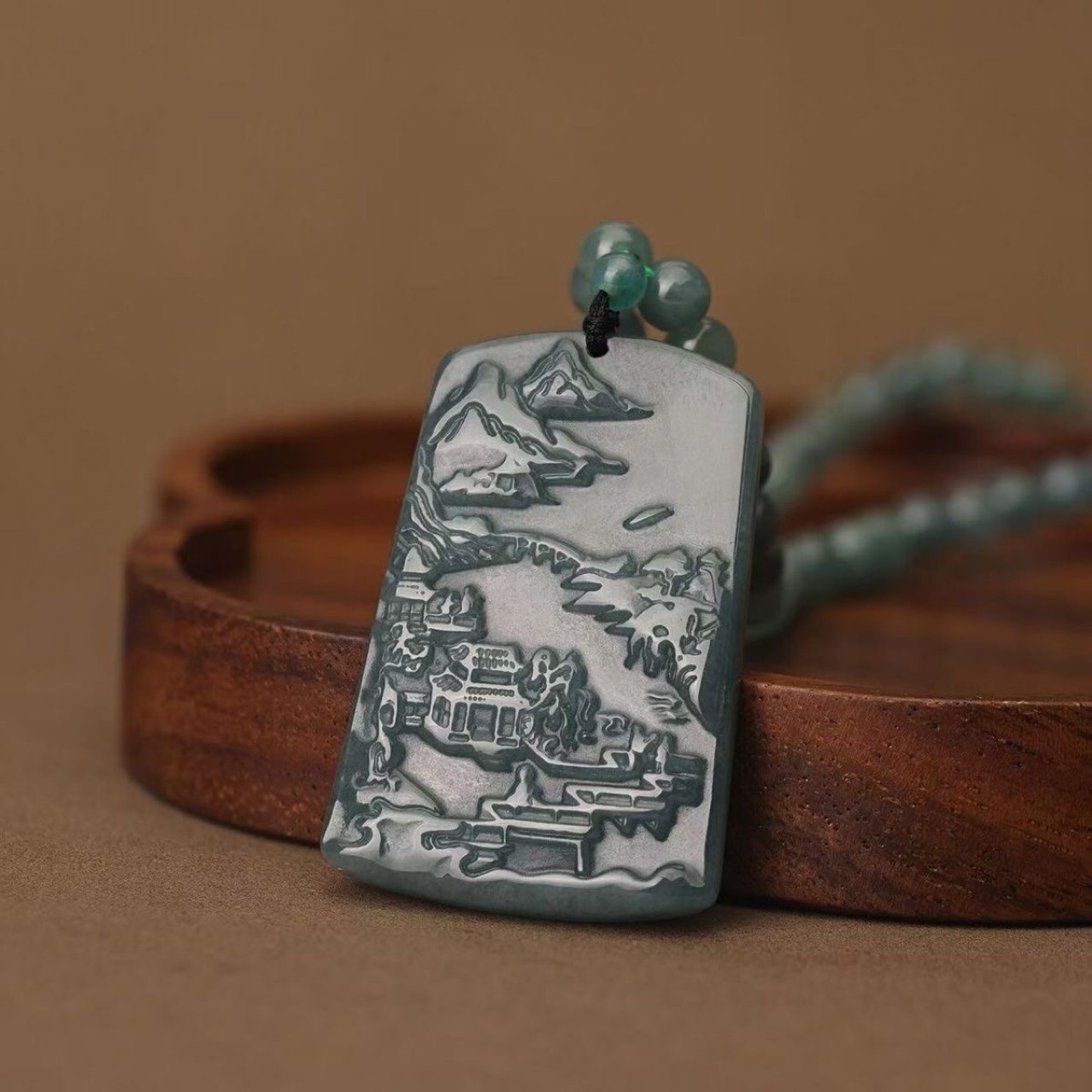 Элитный натуральный нефритовый кулон с голубым водным пейзажем класса А, восковой кулон для мужчин и женщин, оптовая продажа нефрита