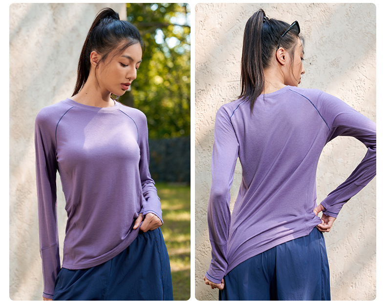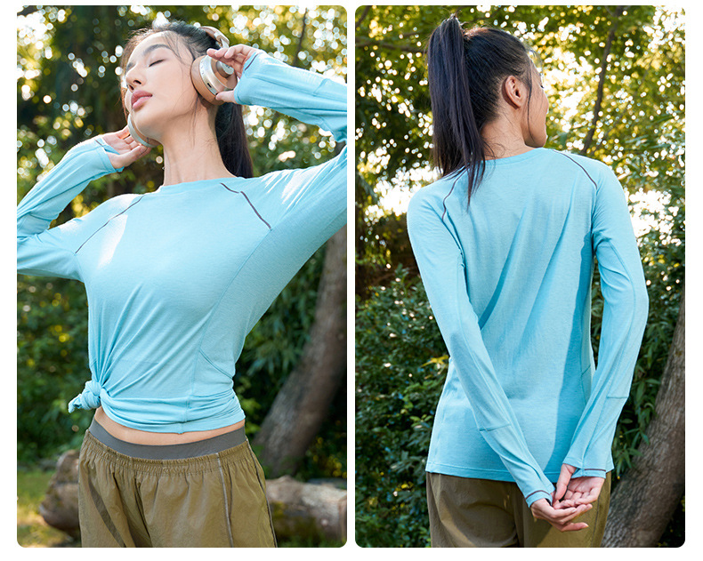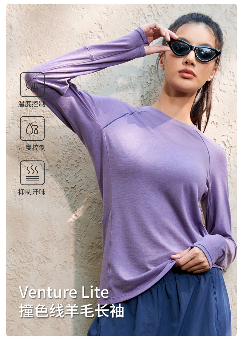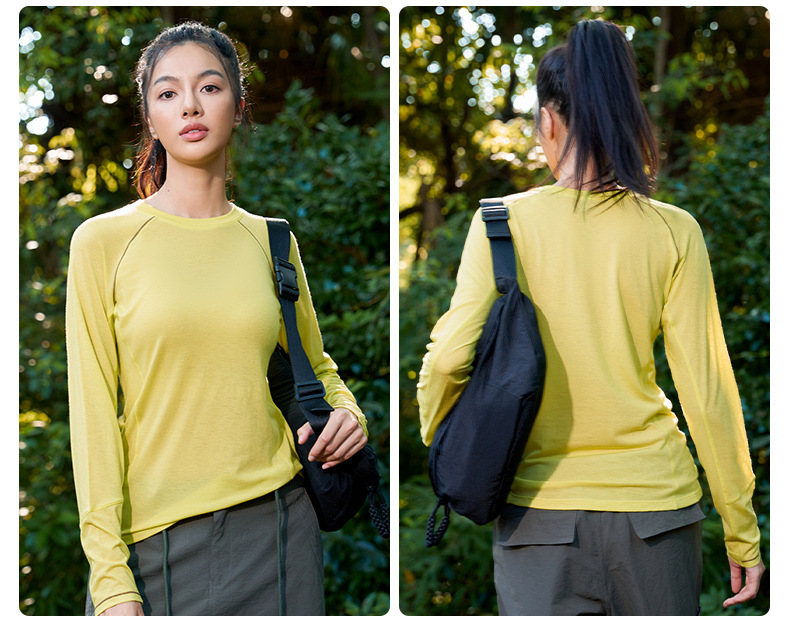 Новая уличная одежда для женщин Zhejiang Xichen, быстросохнущая мериносовая шерсть, длинный рукав для бега и йоги, цветной блок