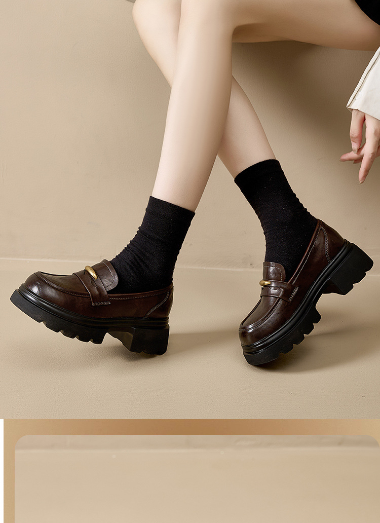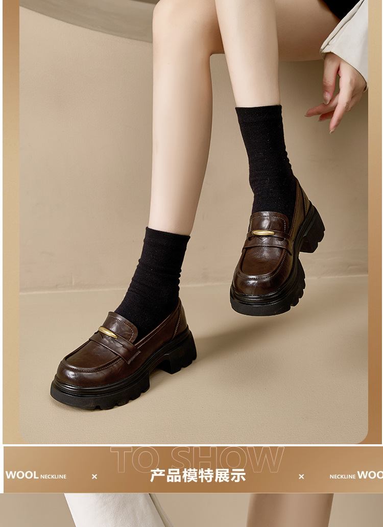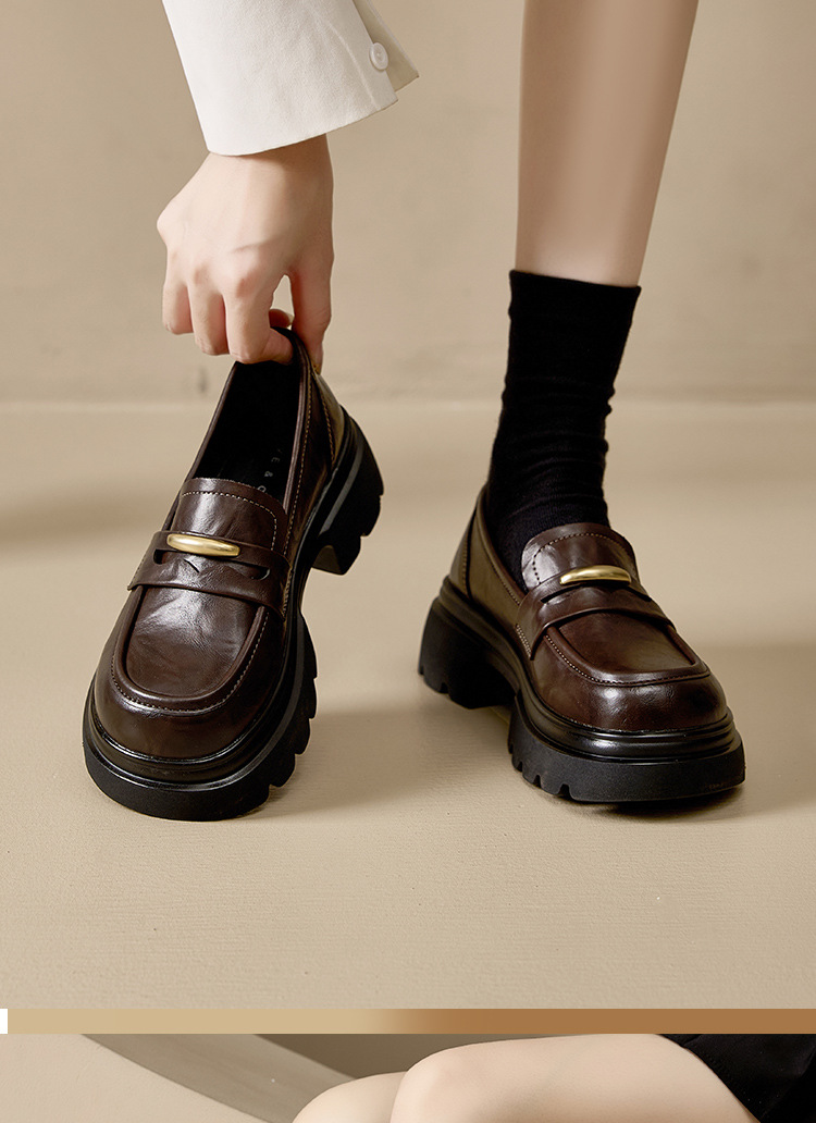 Лоферы с толстой подошвой в британском ретро стиле для женщин, увеличивающие рост, универсальные, на широкую ногу, с небольшими золотыми полосками, осень/зима 2025