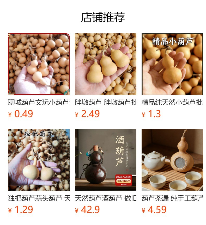 ![]() | 5.5-7cm large fat gourd (without faucet) | ¥3.39 / ≈ 41 ₽ | 30000 | 6179670158684 | |
