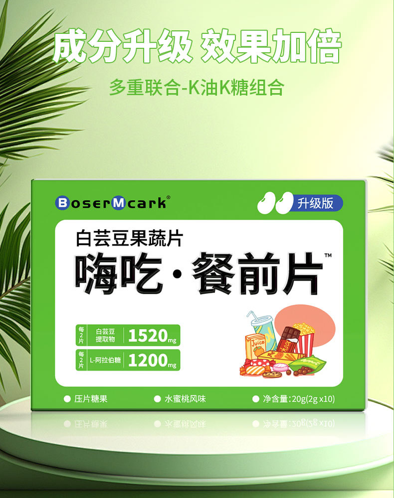 Bosermcark таблетки из белой фасоли и овощей до еды, жевательные таблетки с диетическим волокном, прессованные таблетки, конфеты