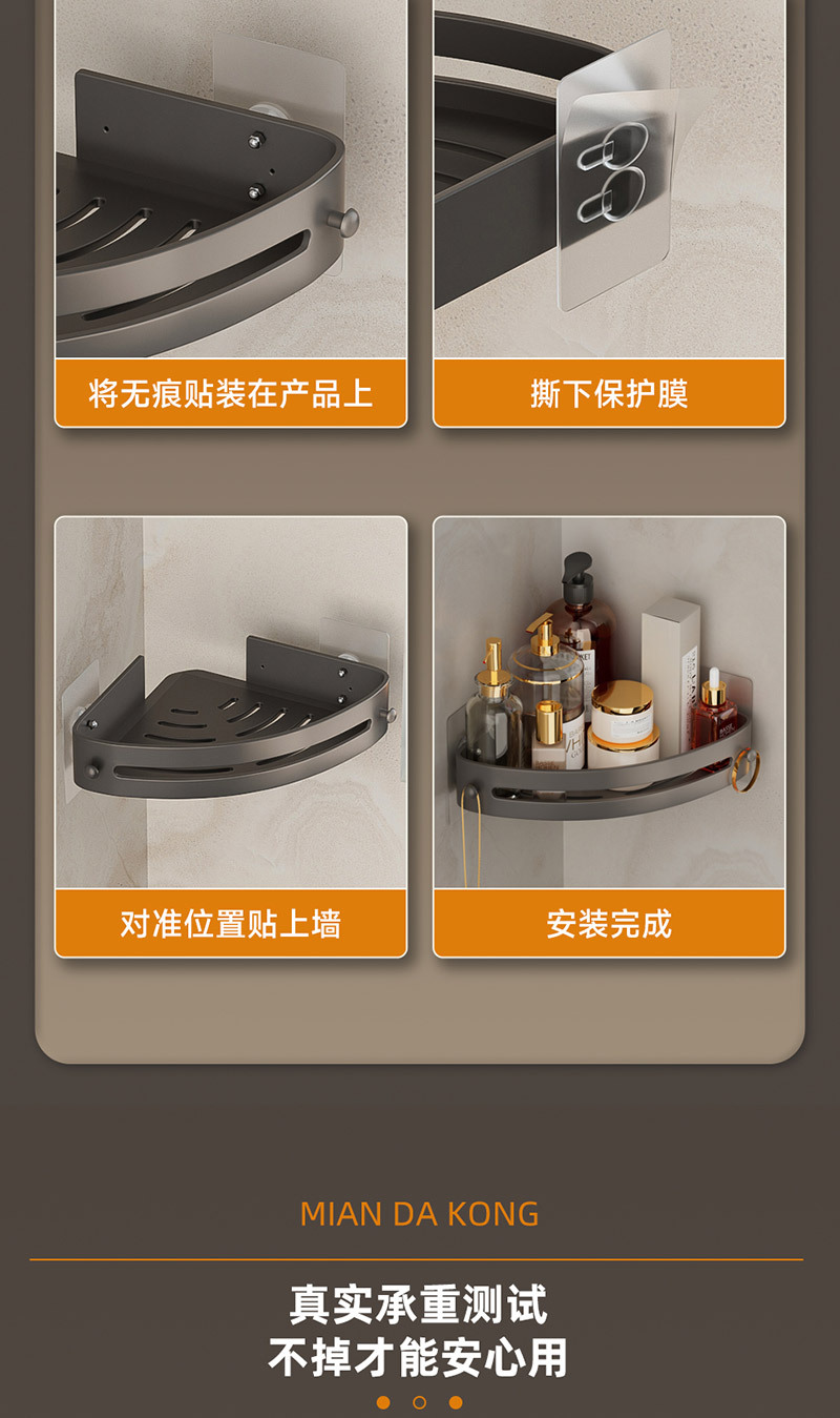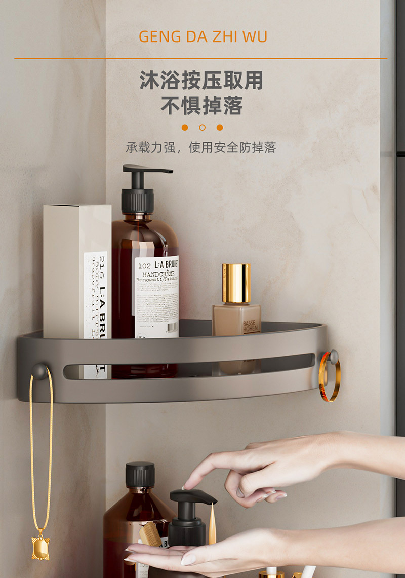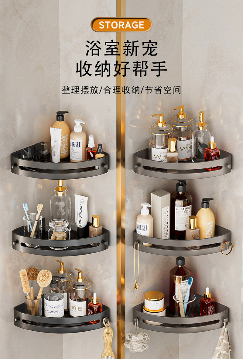 Полка для ванной в форме треугольника без сверления, настенная полка для туалета и раковины в цвете «графит»