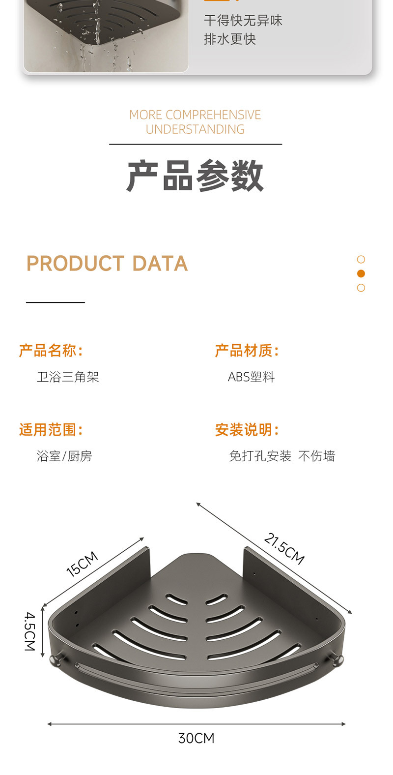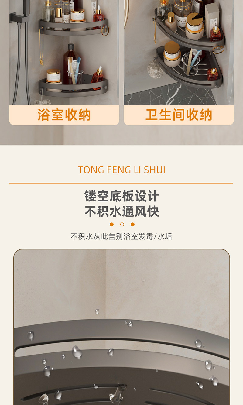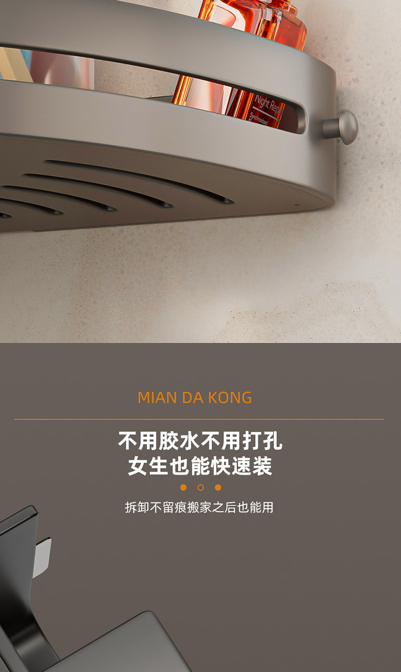 Полка для ванной в форме треугольника без сверления, настенная полка для туалета и раковины в цвете «графит»