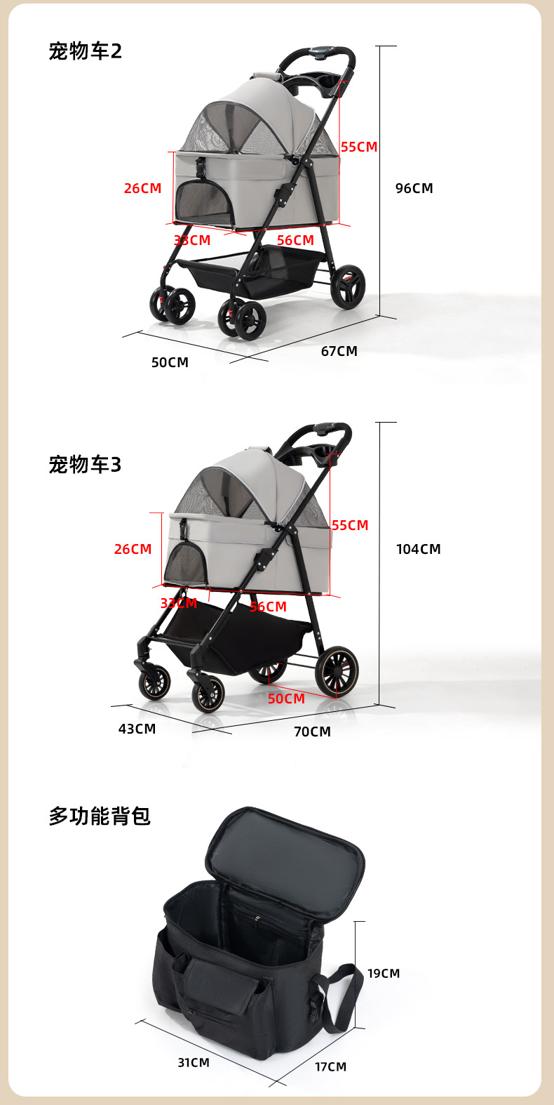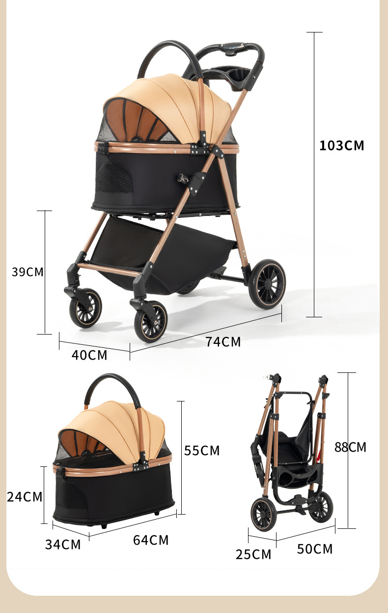 Многофункциональная коляска для домашних животных для собак и кошек, складная коляска для мелких животных, портативная и легкая