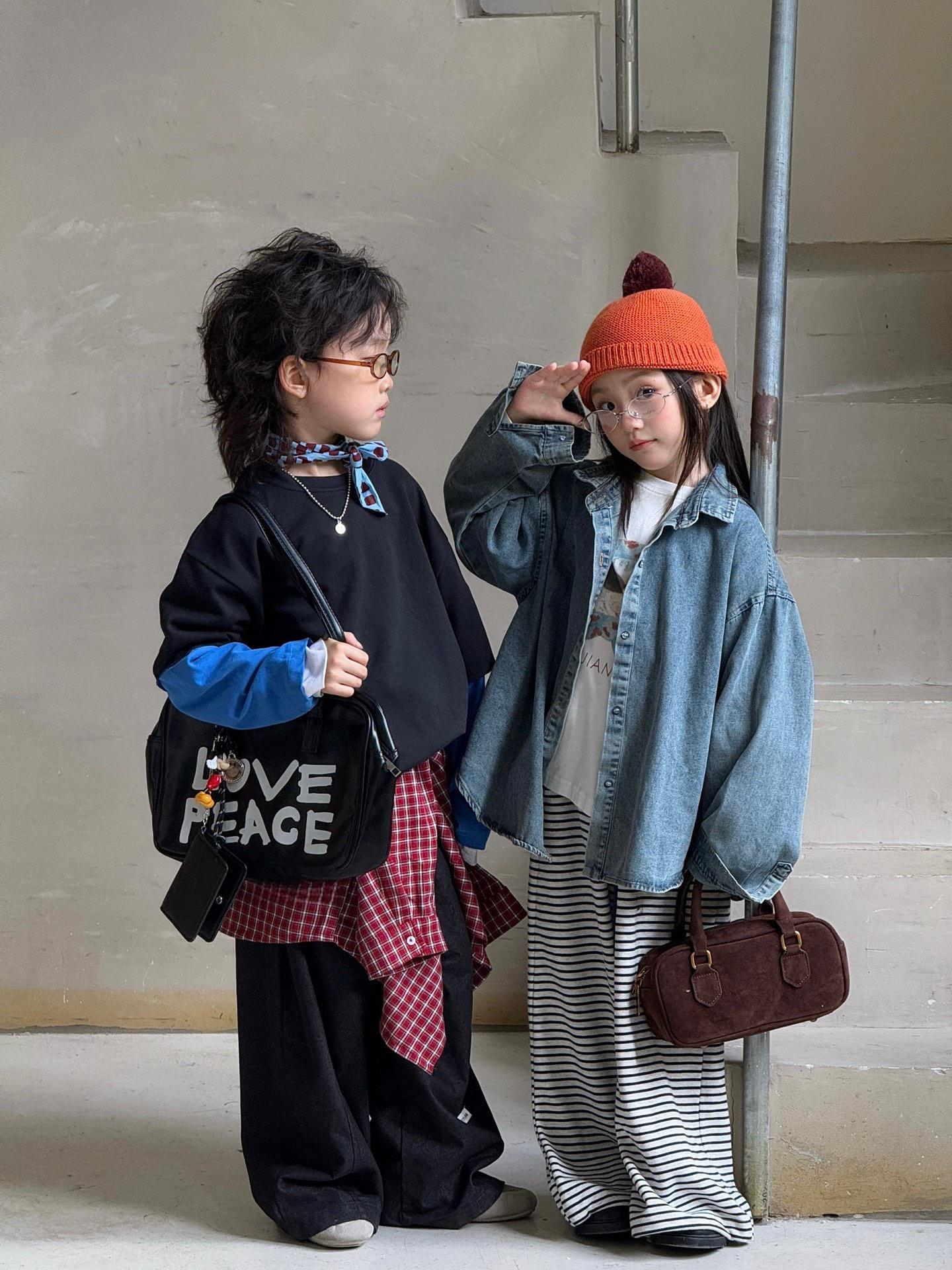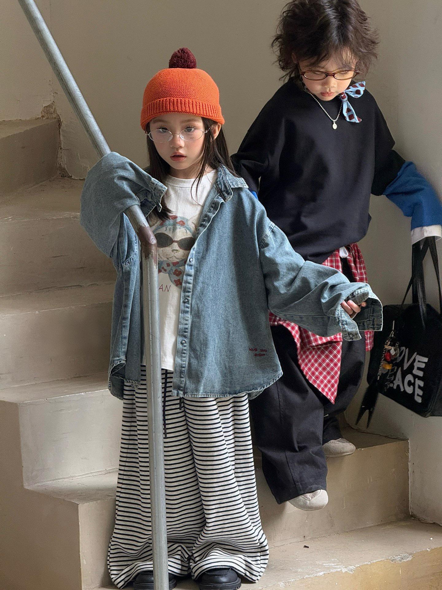Новая осенняя джинсовая рубашка для мальчиков и девочек корейского стиля, универсальная повседневная широкая куртка