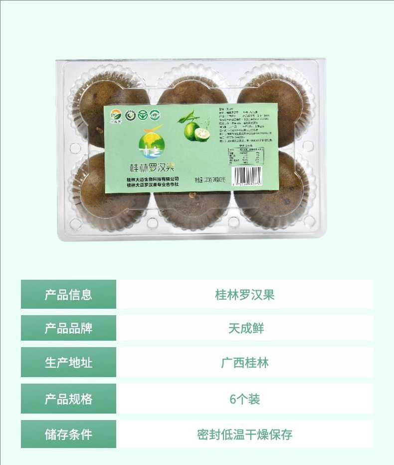 Самостоятельно произведенный и продаваемый традиционный ло хань гуа бокс из 6 штук, жареный ло хань гуа из Гуйлиня, крупный сушеный фрукт