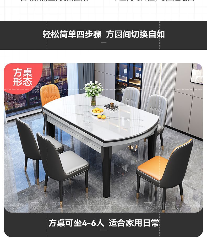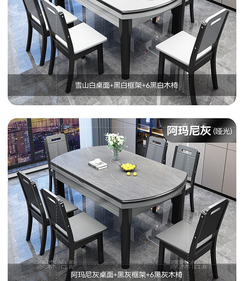 Сланцевый обеденный стол и стулья, современный минималистичный стол из массива дерева для домашнего использования, подходит для небольших квартир, трансформируемый в круглый стол, складной обеденный стол