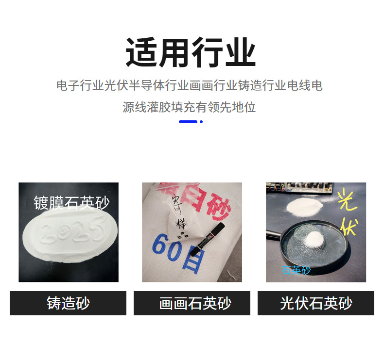 • 4N5 级高纯砂,SiO₂ ≥ 99.995 %,月产 3 万吨,可 1 t 起订;