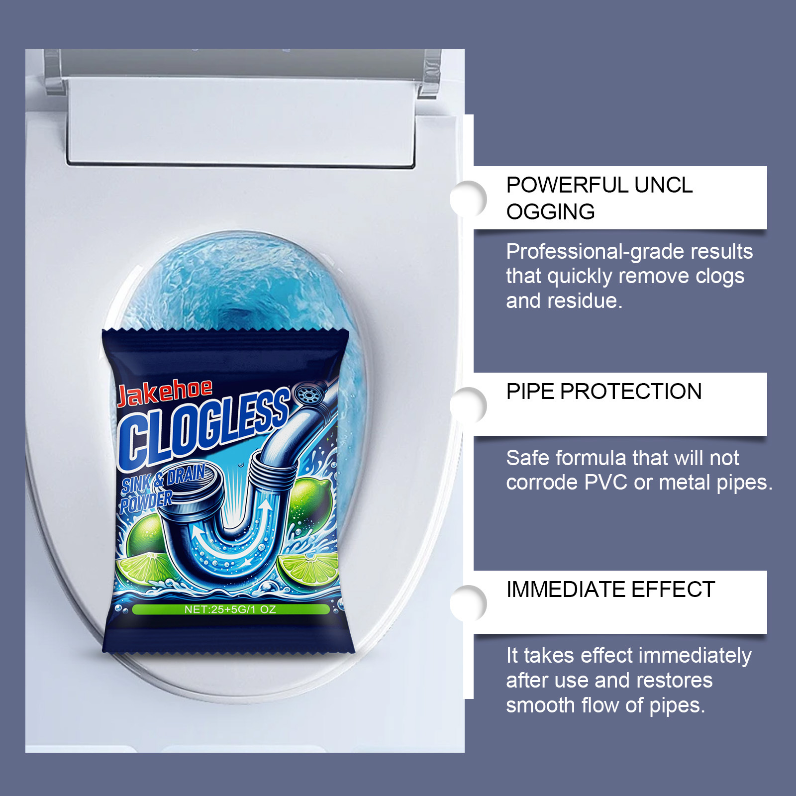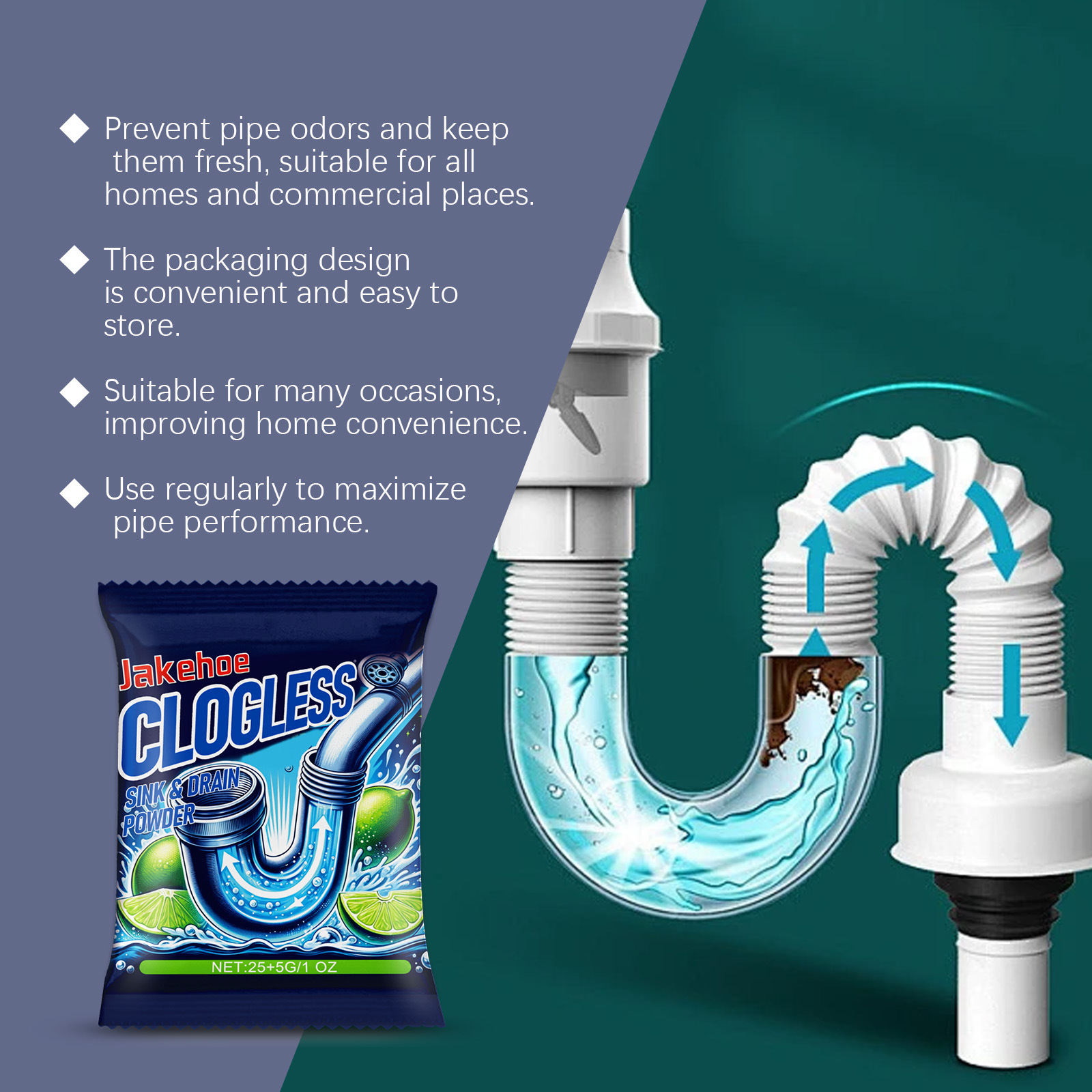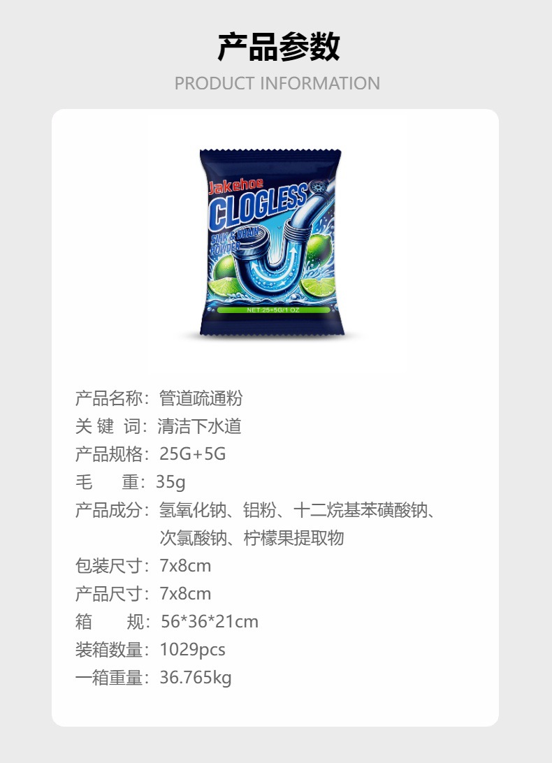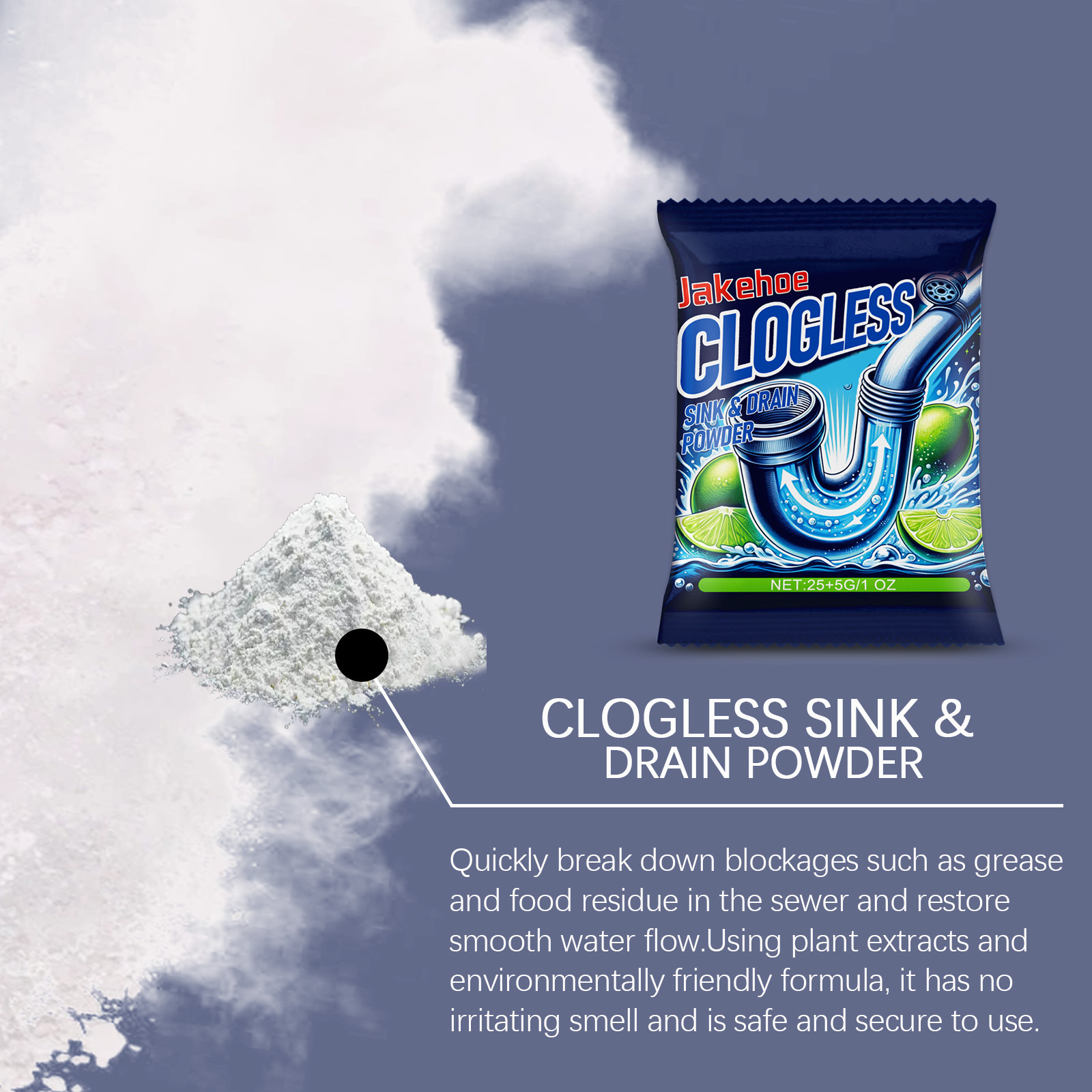 Порошок для устранения засоров Jakehoe, для ванной и кухни, очищающее и дезодорирующее средство