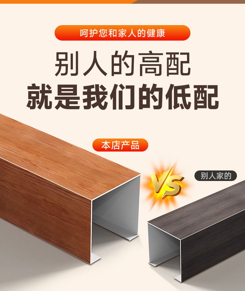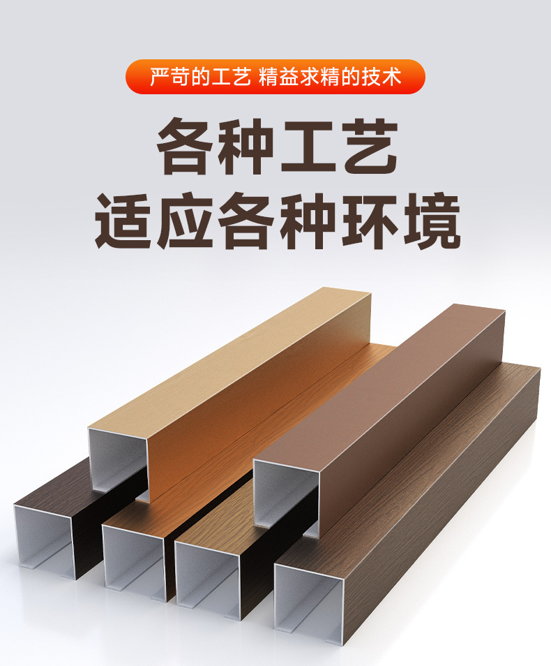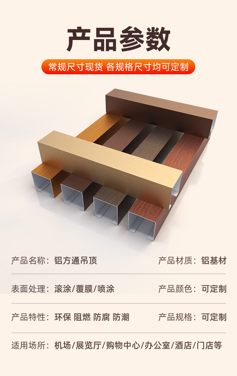 Древесная текстура алюминиевой квадратной трубы офисный потолок полосное украшение балкон алюминиевой квадратной трубы решетка квадратная труба потолочный материал для самостоятельной установки