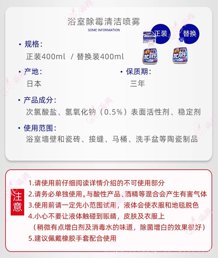 Импортированный японский спрей для удаления плесени из ванной, удаление пятен плесени со стен, чистка крана и плитки, 400 мл