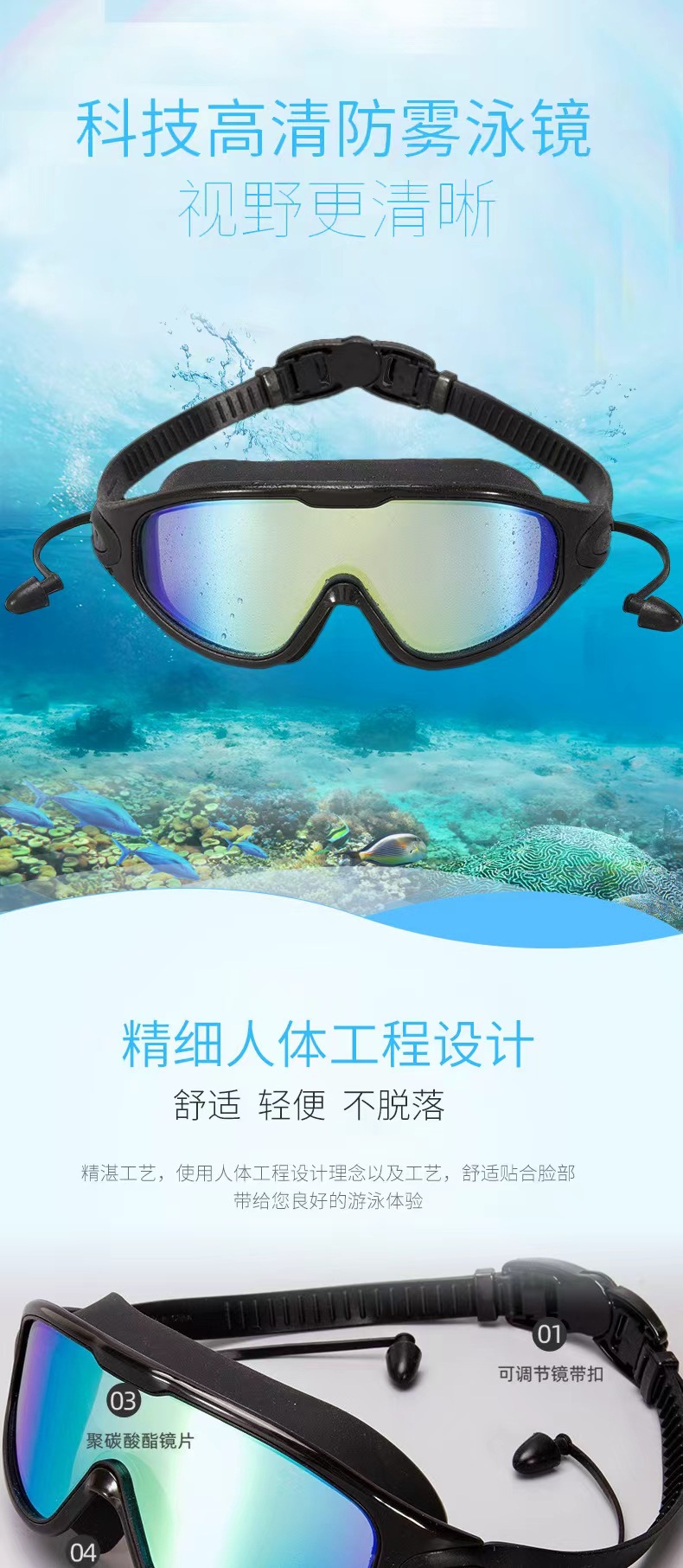 Плавательные очки с силиконовыми встроенными берушами, водонепроницаемые, противотуманные, для взрослых мужчин, рецептурные очки