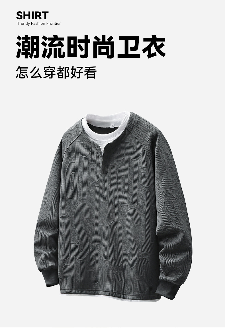 Толстовка M-8XL большого размера, стильная имитация двух предметов, мужская футболка с длинным рукавом, весна и осень 2025, новый модный бренд, универсальная