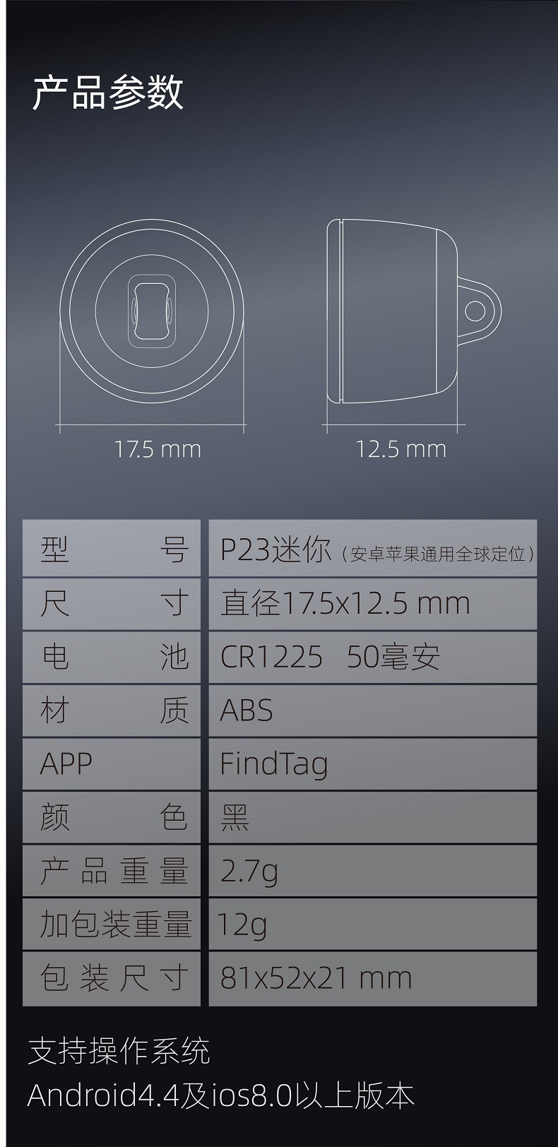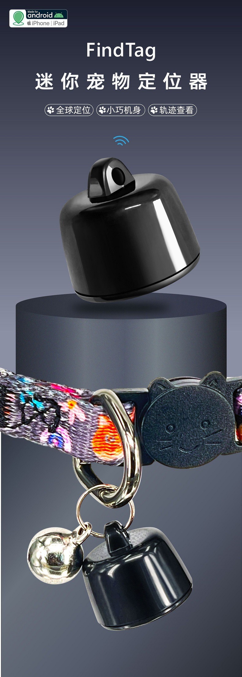 Findtag Android iOS универсальное устройство против потери, исторический трекер для домашних животных и пожилых вещей