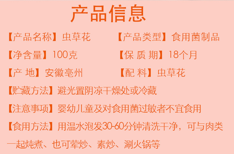 Номер товара Mountain delicacies and sea delicacies, cordyceps flowers