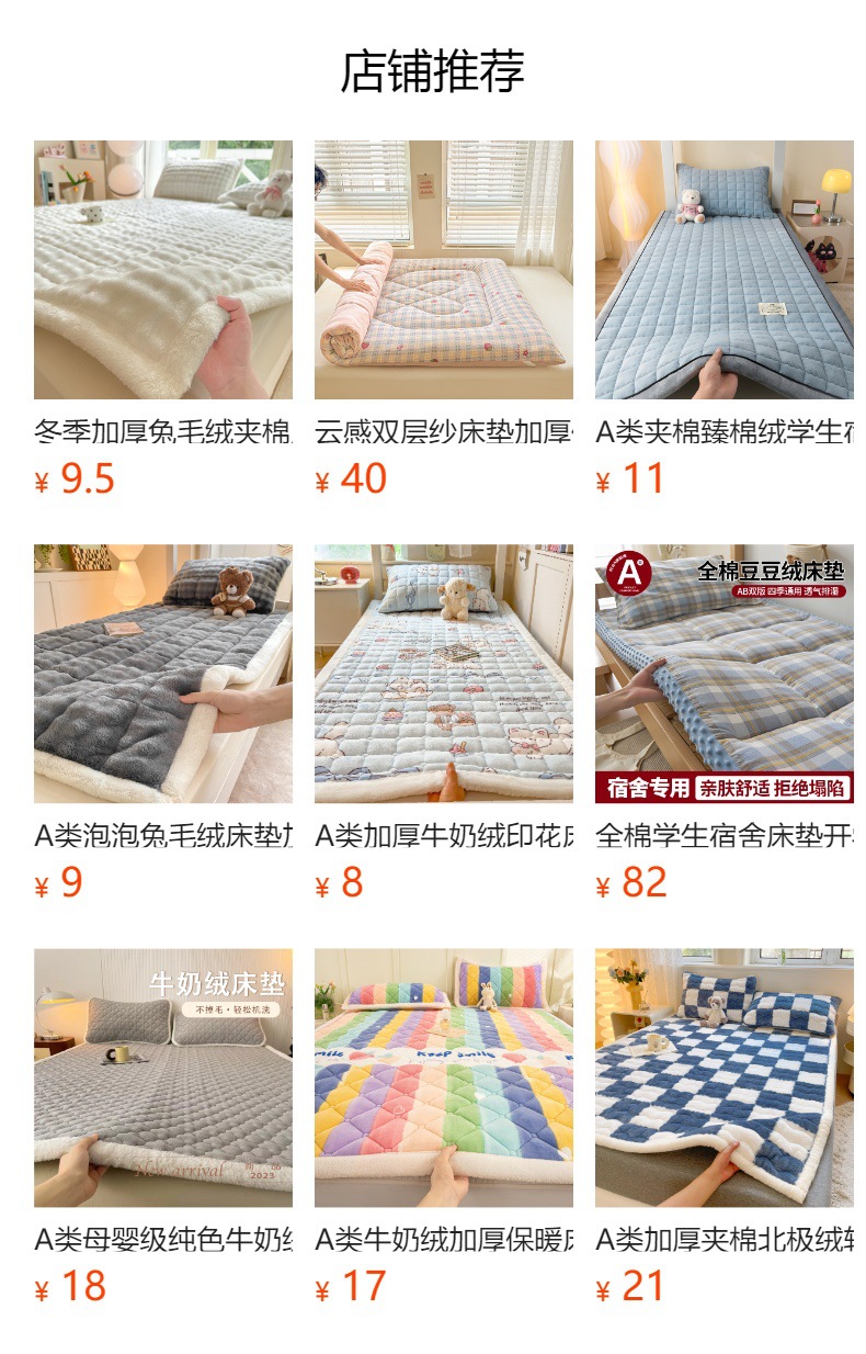 ![]() | Fenledi [upgraded and thickened; heat storage and warmth] | 90*200 quilted mattress | ¥29.0 / ≈ 350 ₽ | 9999 | 6083761195003 | |