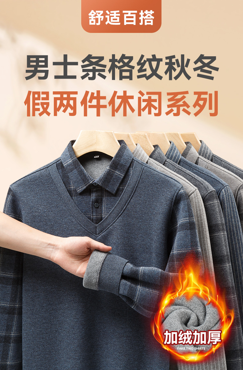Высококачественная фальшивка в два предмета, вязаный свитер с длинным рукавом, рубашка с воротником, утолщенная флисовая подкладка, базовая рубашка для мужчин среднего и пожилого возраста