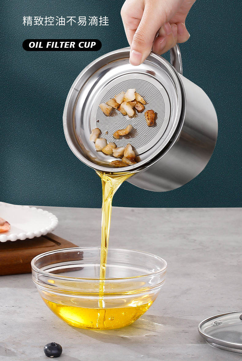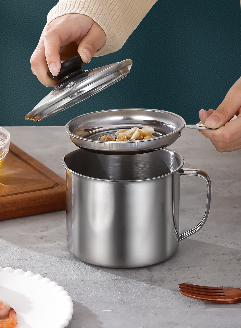 Чаша для масла из нержавеющей стали с крышкой, фильтр для дома, большая емкость, фильтрация остаточного масла, контейнер для сала