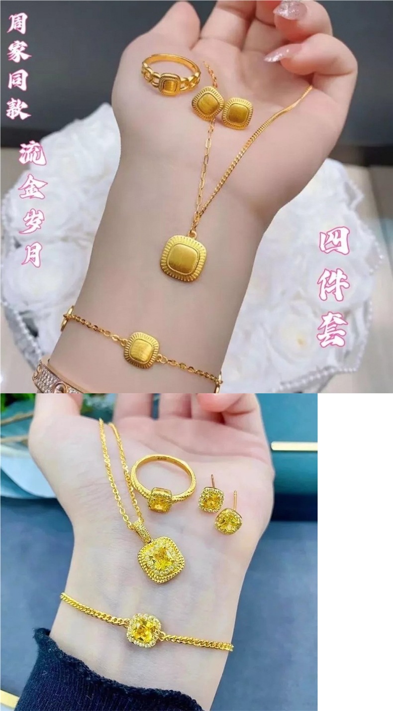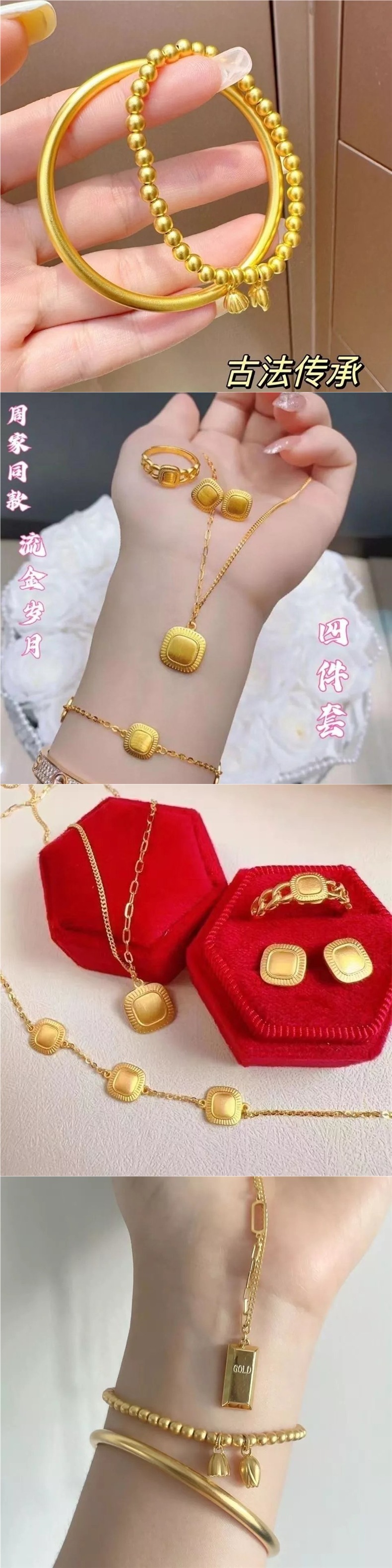 Аутентичные реквизиты для помолвки, имитация трехзолотого сервиза, песчаное золотое ювелирное украшение, пятипредметный набор, браслет древнего наследия