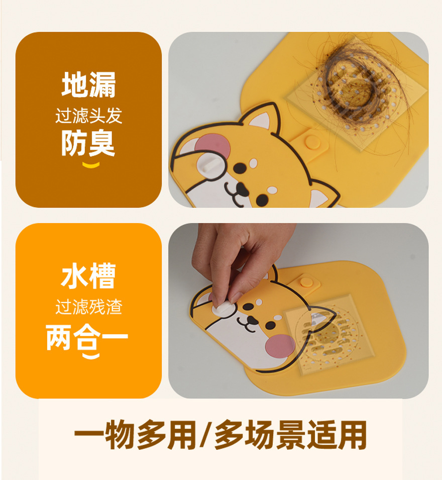 Маленькая желтая двухвостовая фильтрующая крышка для пола с запахом для ванной, предотвращает волосы и запах, мультяшная наклейка для дренажа, многофункциональная