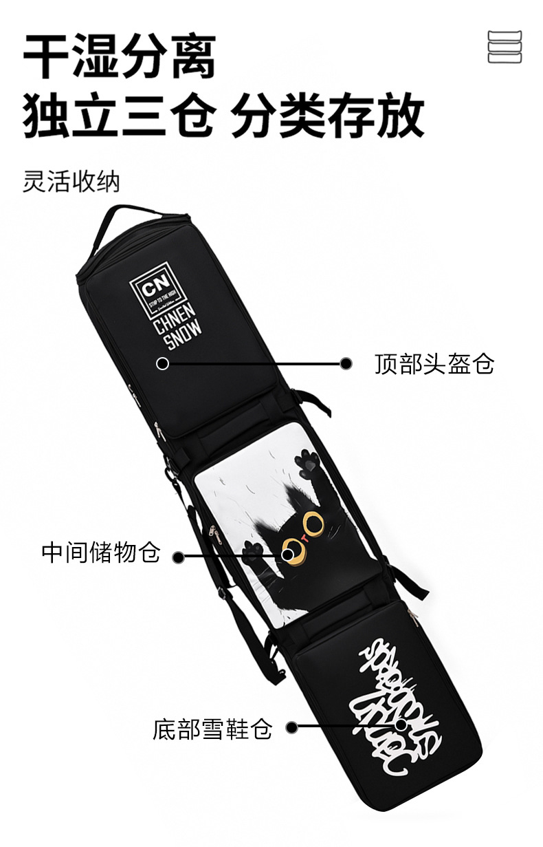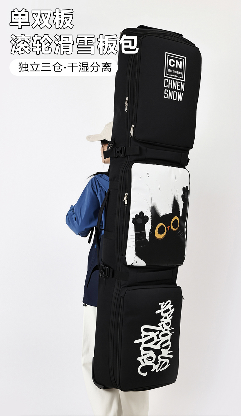 Новая лыжная сумка с колесами, сумка для одной и двух досок, большой рюкзак, разделение на сухое и влажное для лыжного снаряжения