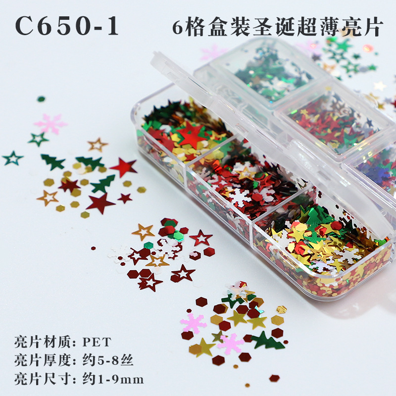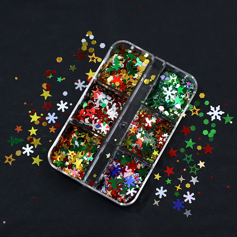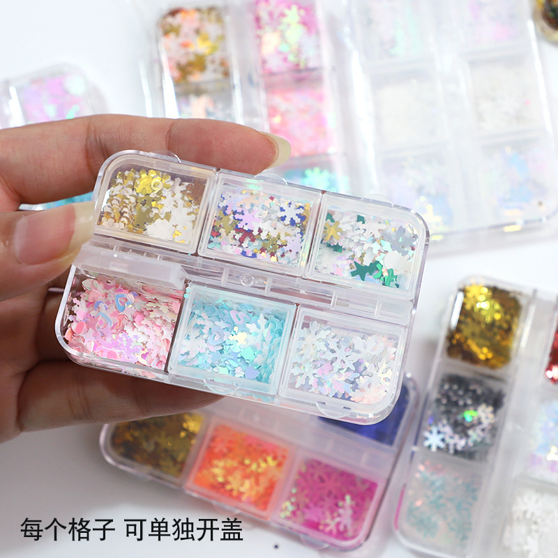 Набор из 6 карманов ультратонких рождественских снежинок для ногтей, белые снежинки, рождественский блеск, европейский и американский стиль