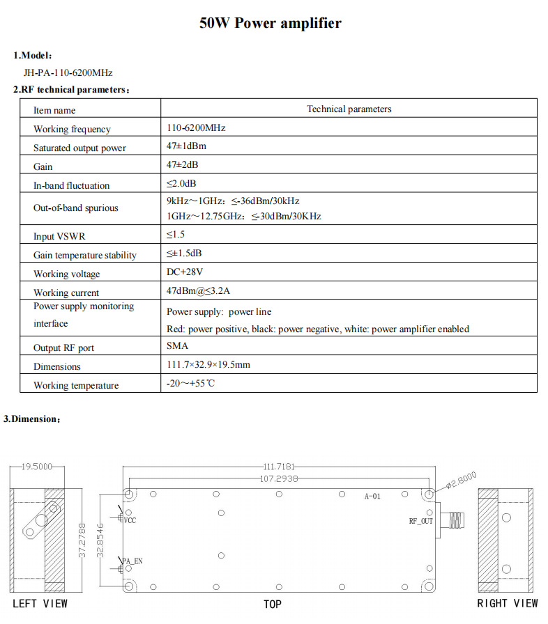 Модуль усилителя мощности Jianhong Gan Uav 50W цифровой источник 300-6000