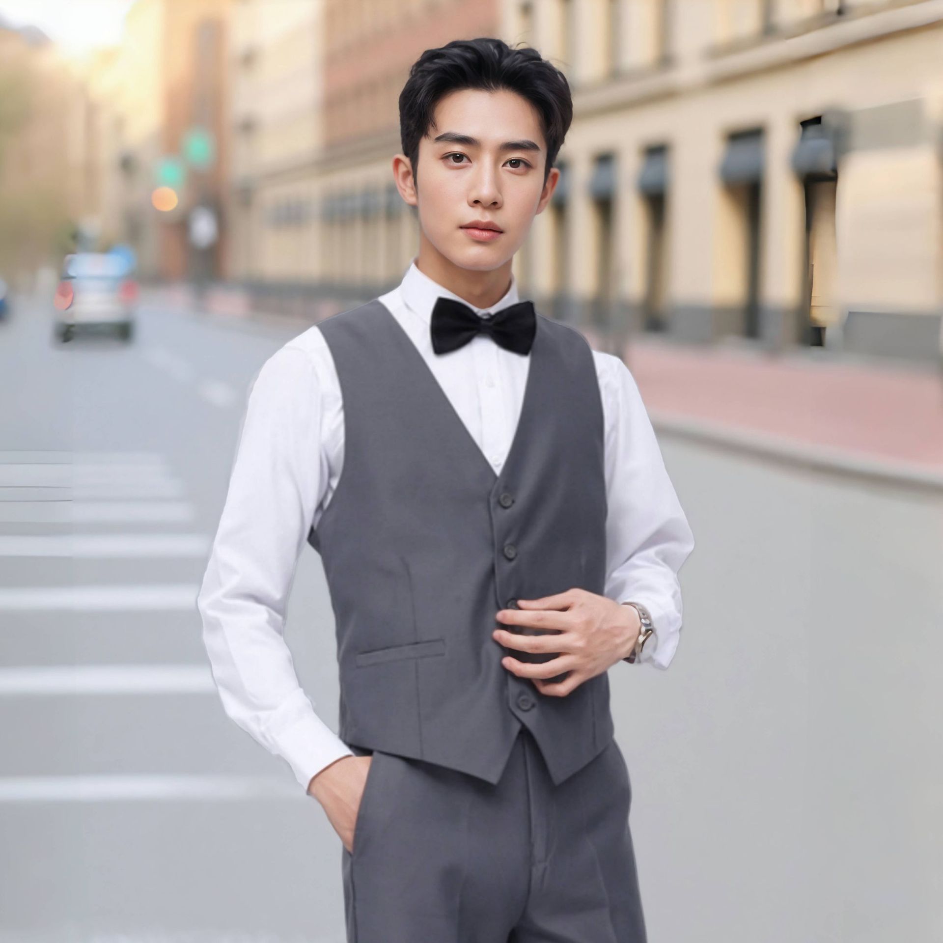 男士马甲衬衫九分裤西裤套装三件套伴郎服兄弟团服装新郎结婚礼服商务休闲修身西装马甲套装工作服职业正装主持人礼服毕业班服大学生求职面试装清仓断码