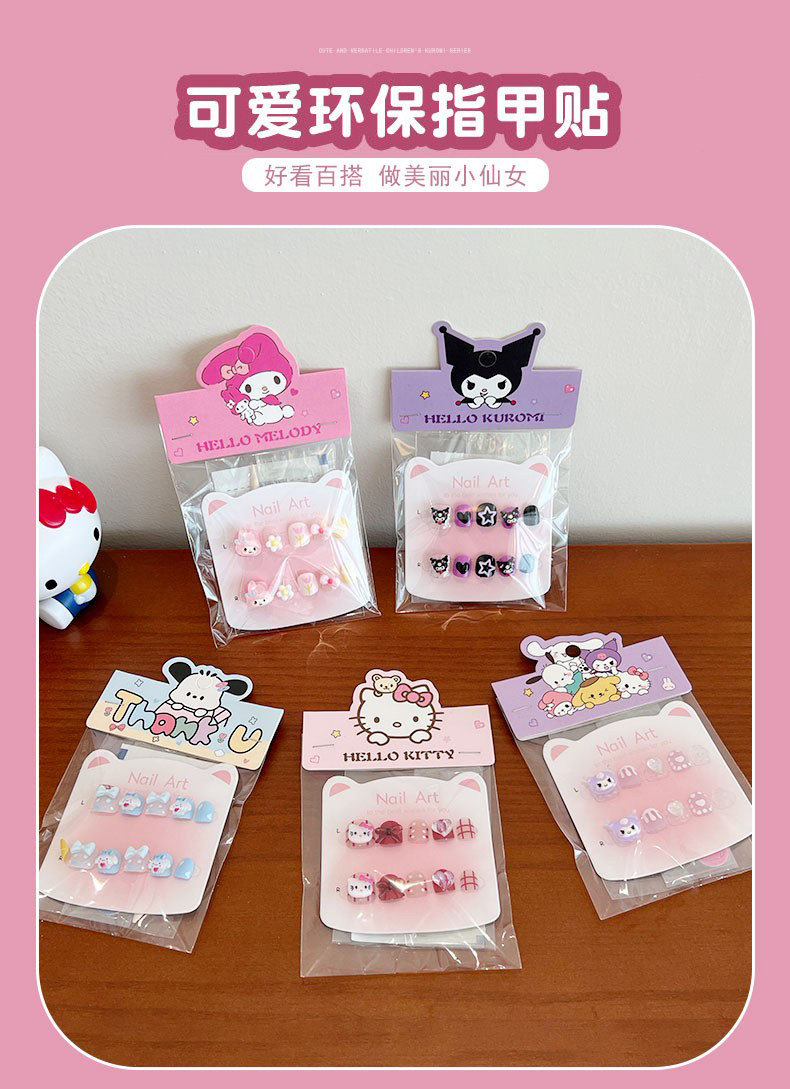 Стикеры для ногтей Sanrio для детей, нетоксичные и без запаха, милые мультяшные наклейки для ногтей для девочек